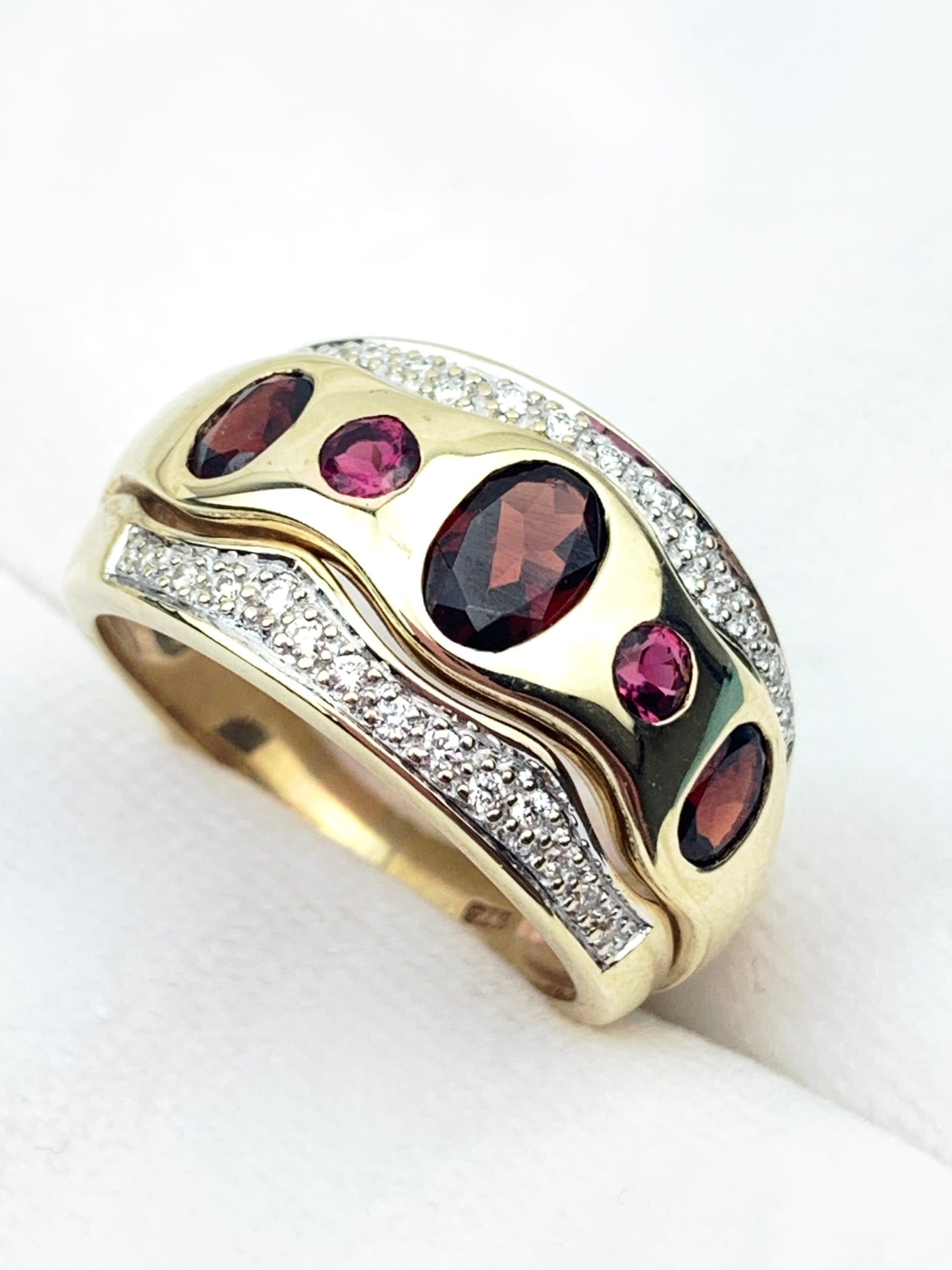9ct Garnet, Pink Sapphire & Diamond Wide Gold Ring