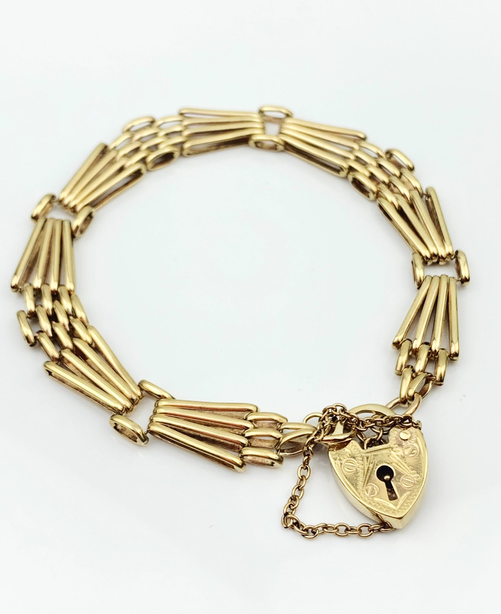 Vintage 9ct Gold Gatelink Bracelet & Heart Padlock