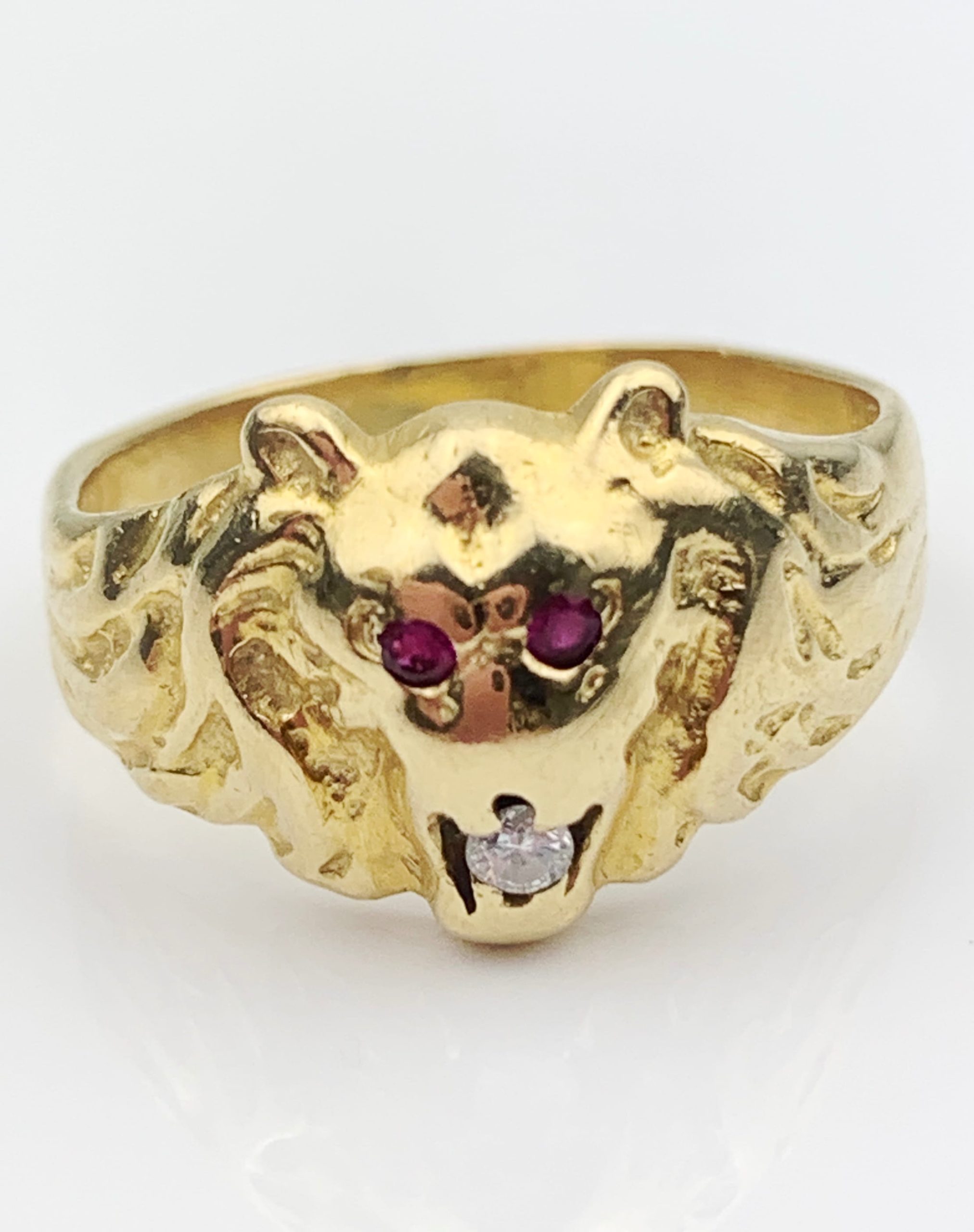 18ct Gold Ruby Diamond Lions Head Ring