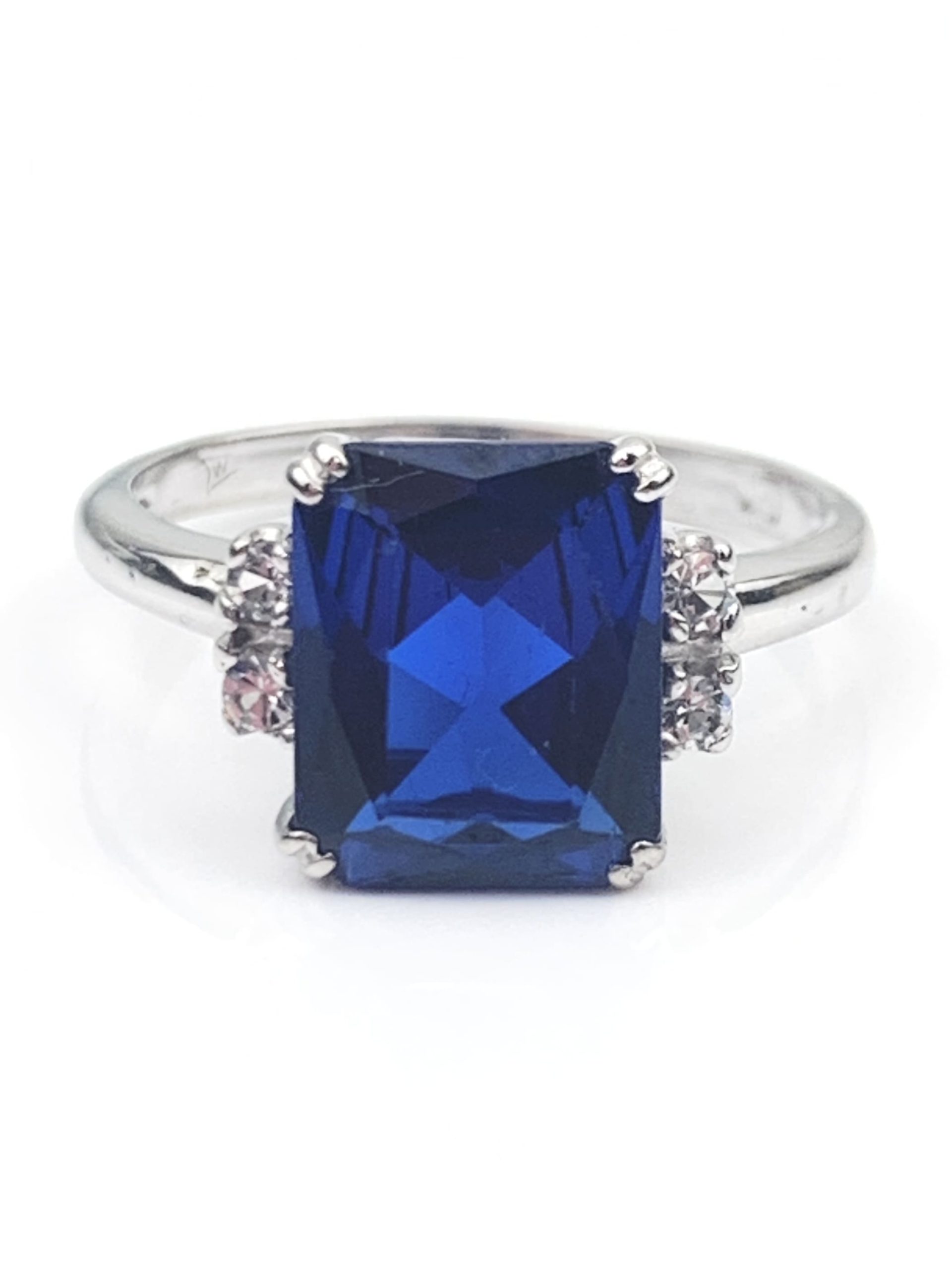 Stunning 10ct White Gold CZ & Blue Spinel Ring