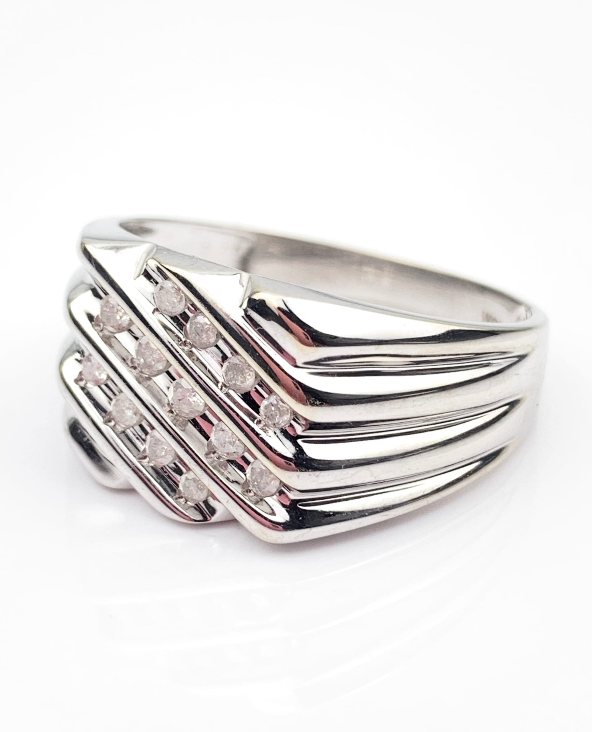 Stunning 10ct White Gold Mens Diamond Ring