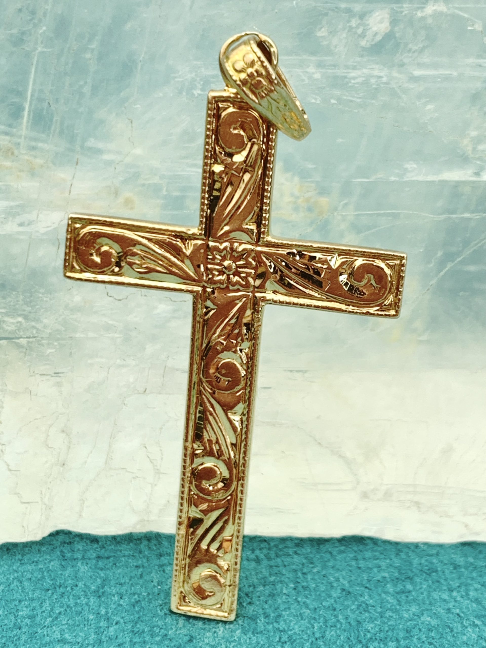 Unique 14ct Yellow Gold Cross Pendant – Textured Design