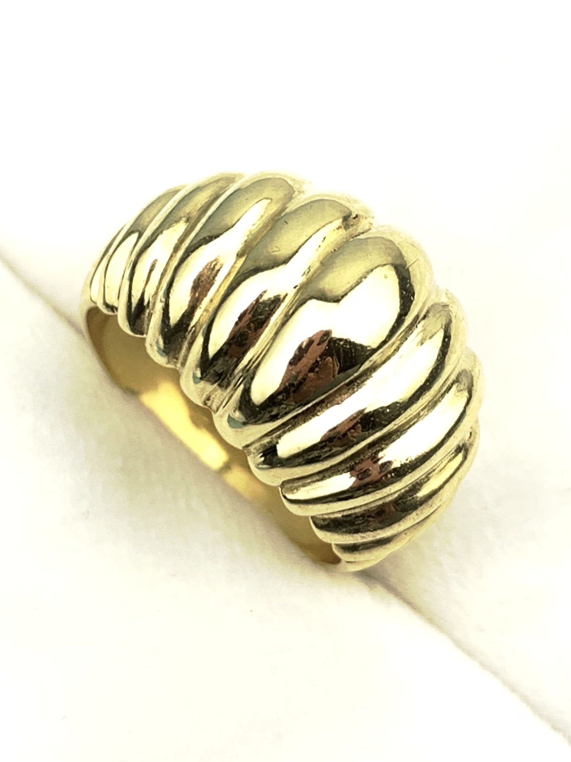 Stunning 14ct Yellow Gold Ribbed Dome Ring or “Croissant Ring”