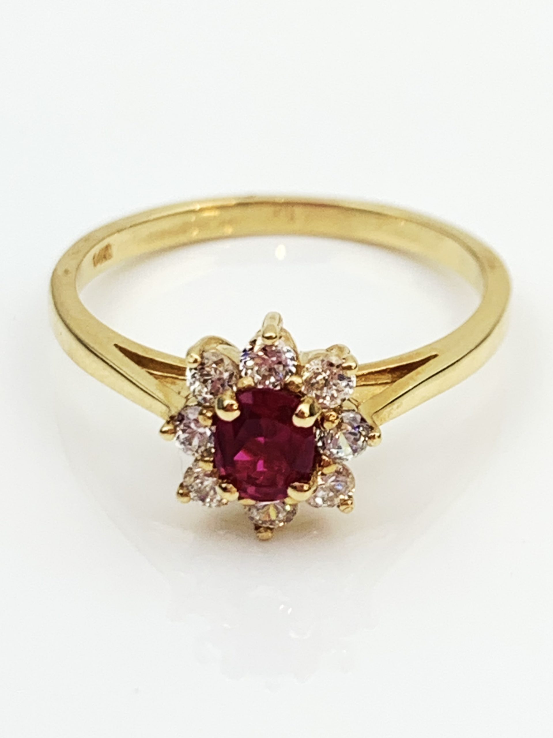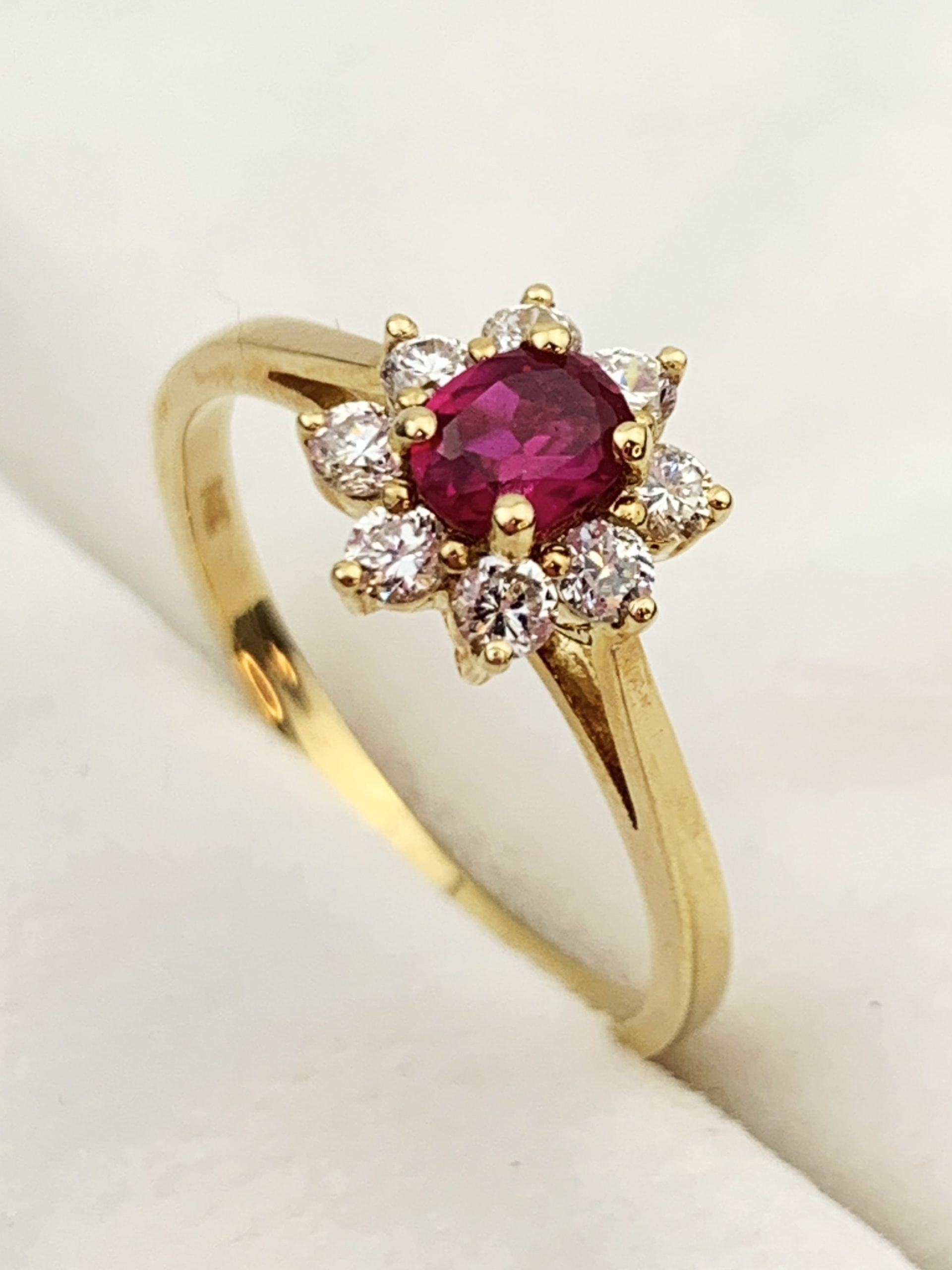 Stunning 14ct Yellow Gold Ring with Synthetic Ruby & Clear Cubic Zirconia Features – BRAND NEW!!