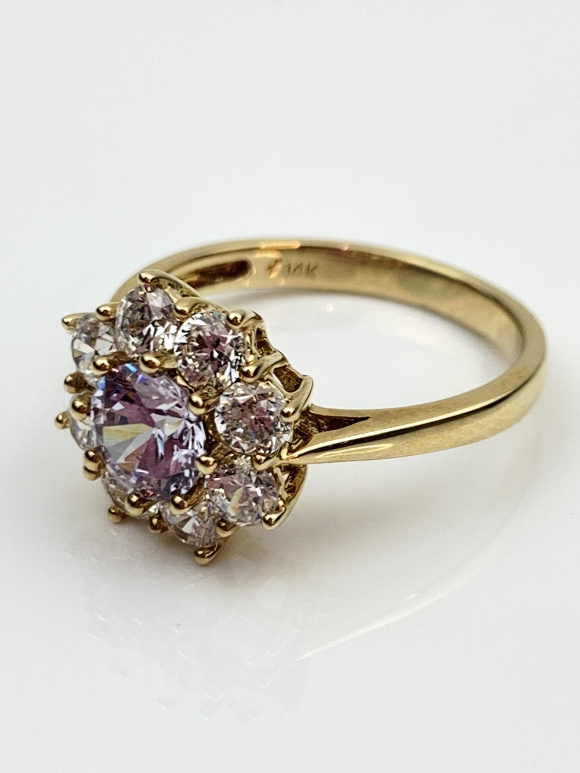 Stunning 14ct Yellow Gold Ring with Purple Tourmaline & Clear Cubic Zirconia Features – BRAND NEW!!