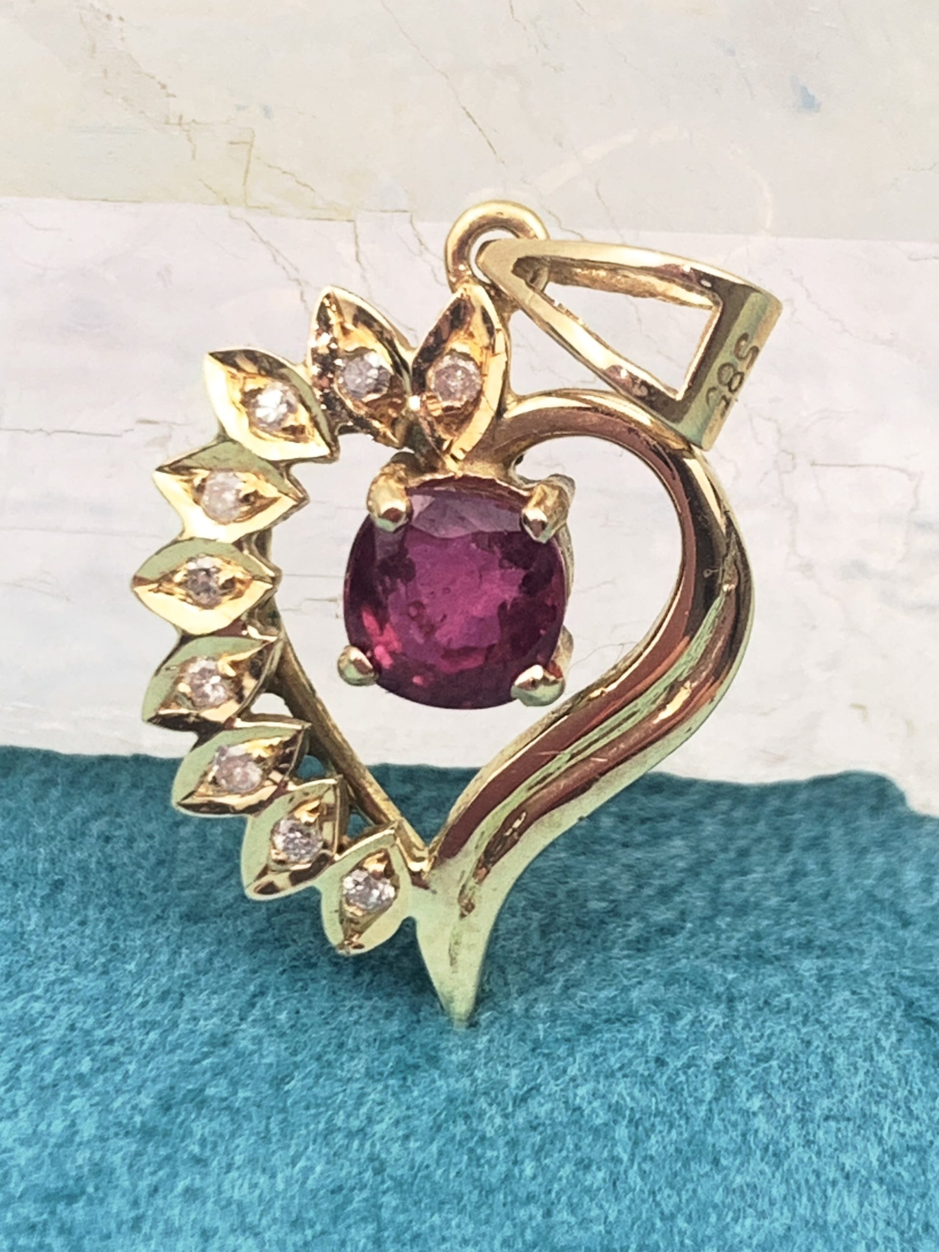 Pretty 14ct Yellow Gold Ruby & Diamond Heart Pendant
