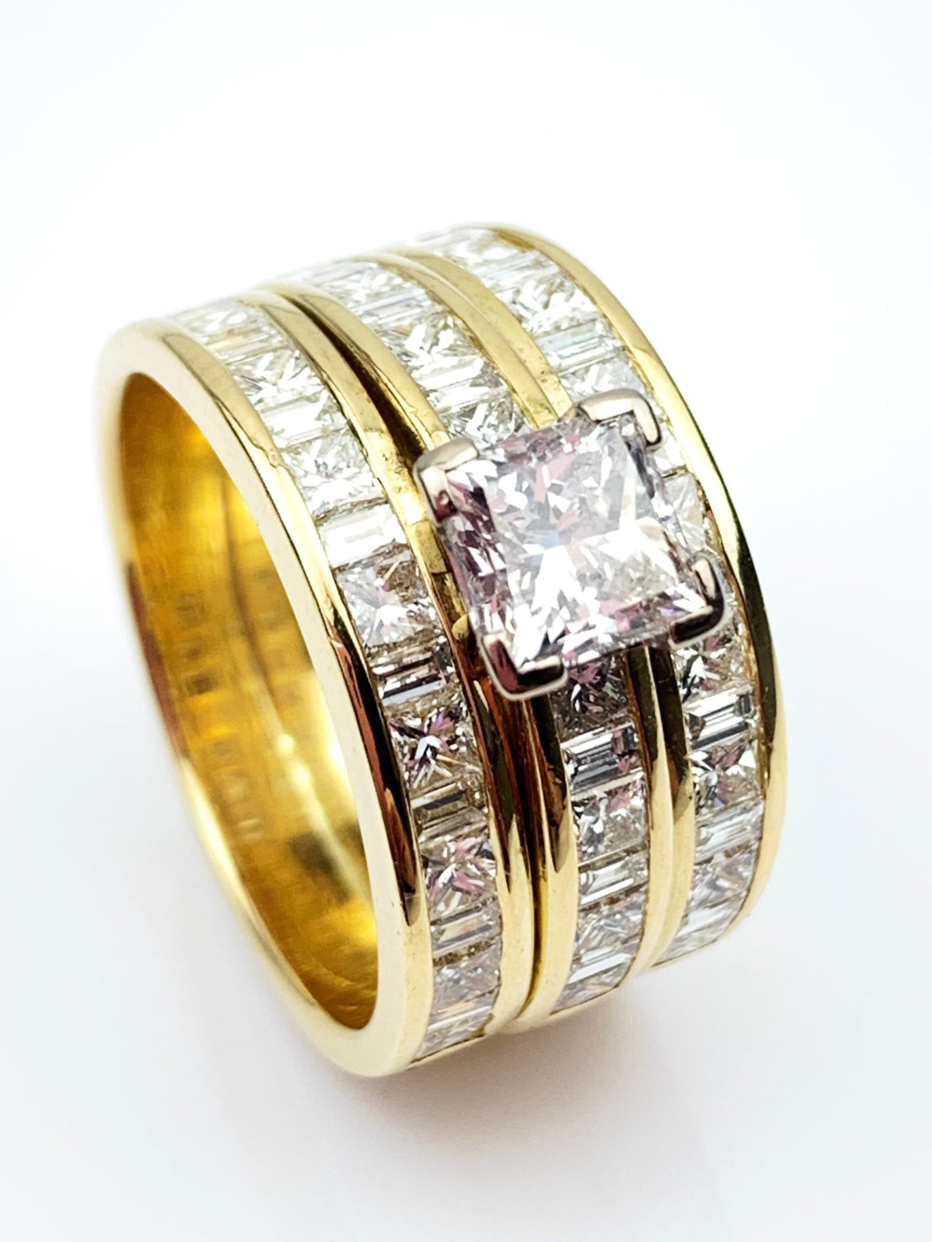 Wedding Ring: Nine Princess Cut Channel Set Diamonds & Eight Baguette Cut Channel Set Diamonds – TDW 0.50cts