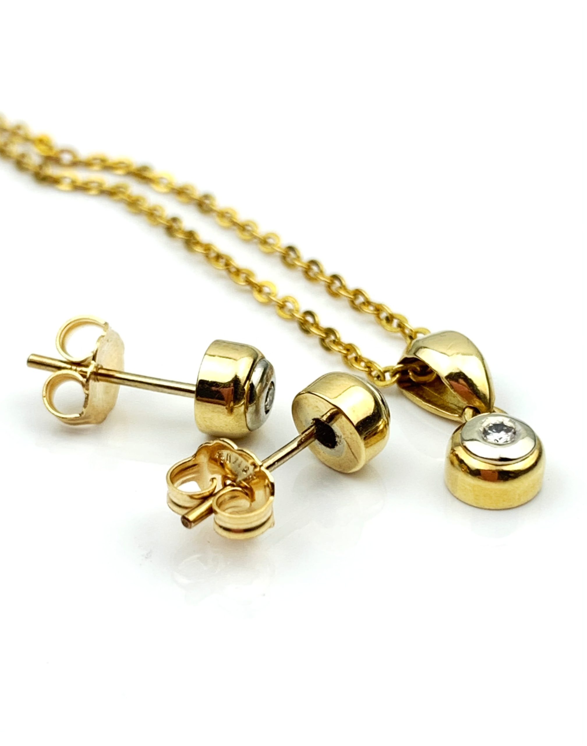 18ct Gold Diamond Pendant & Earrings Set