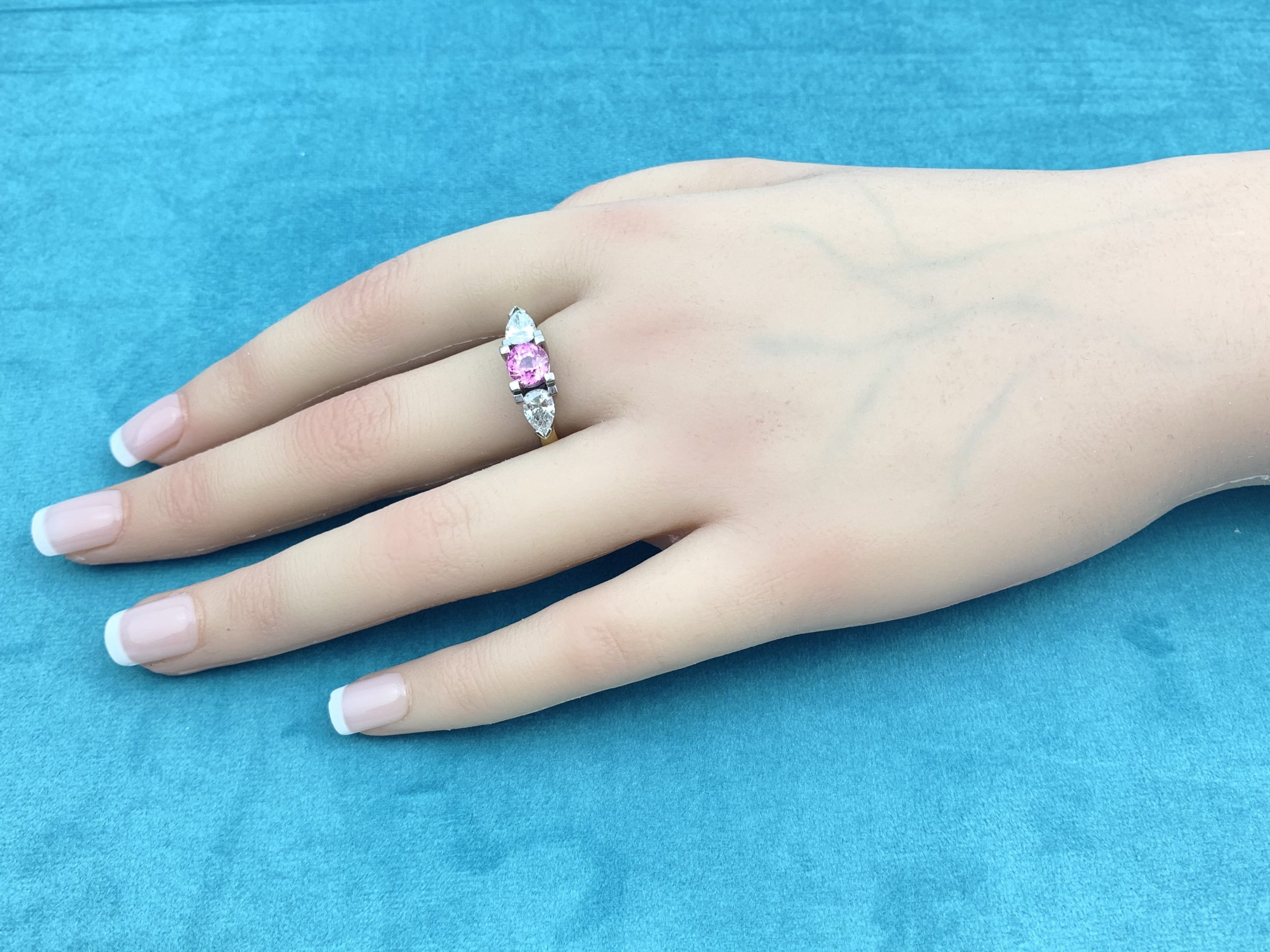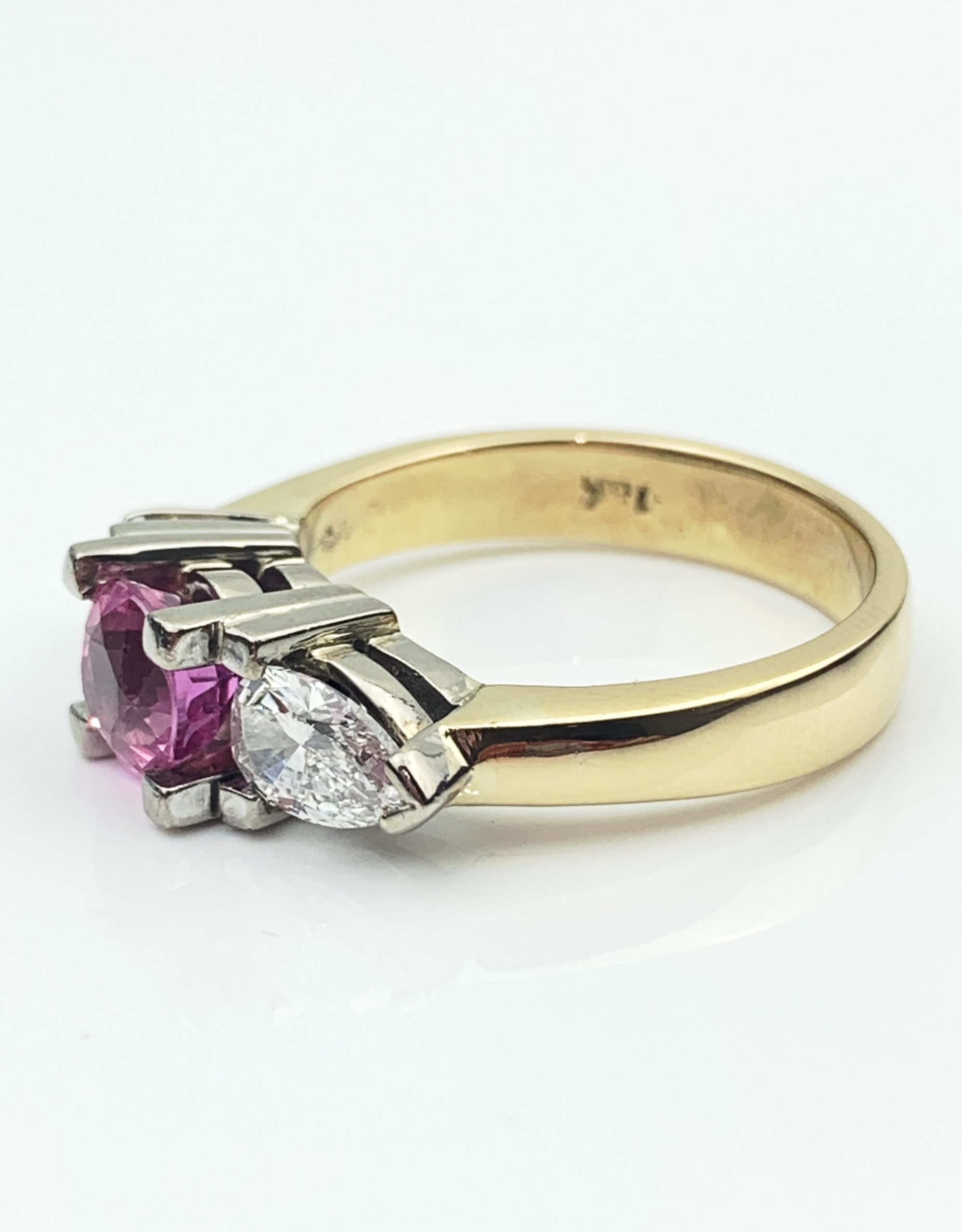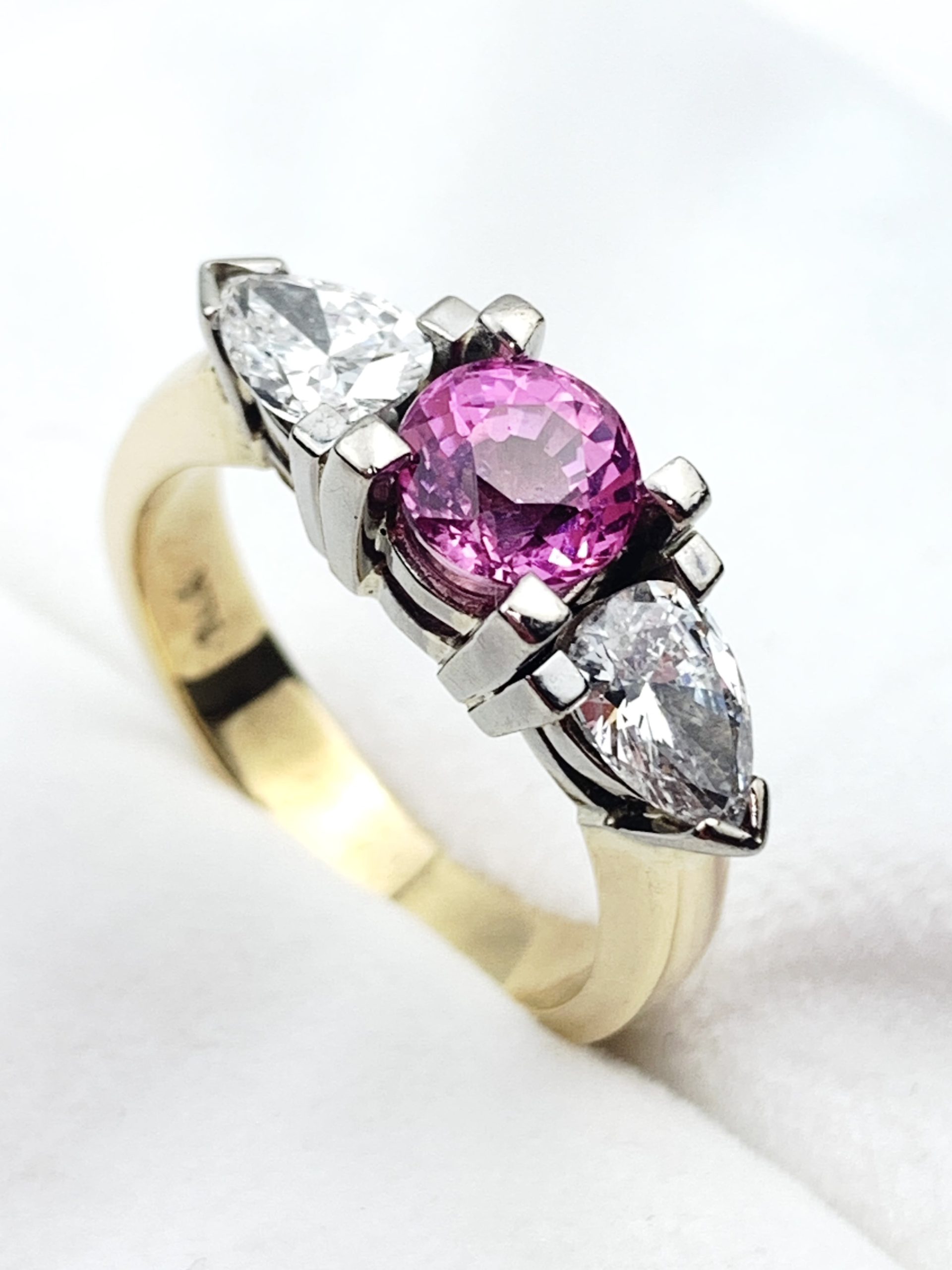 Unique 18ct Yellow/White Gold Diamond & Pink Sapphire Ring