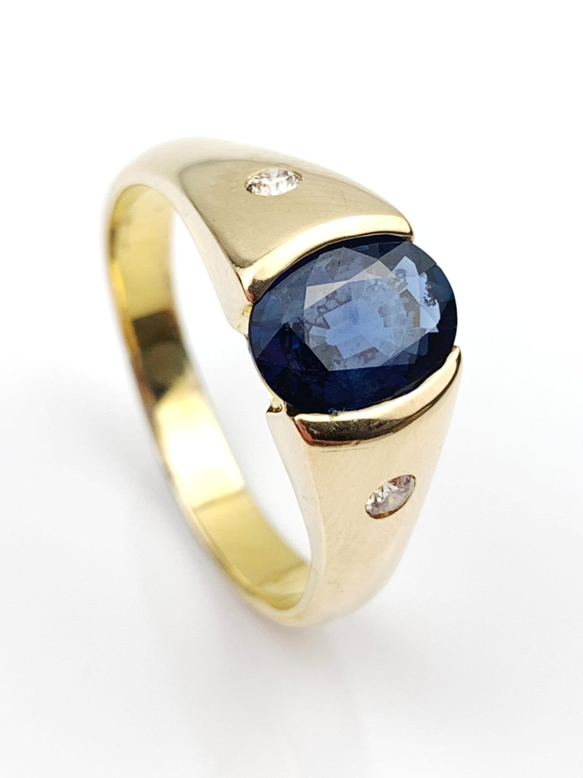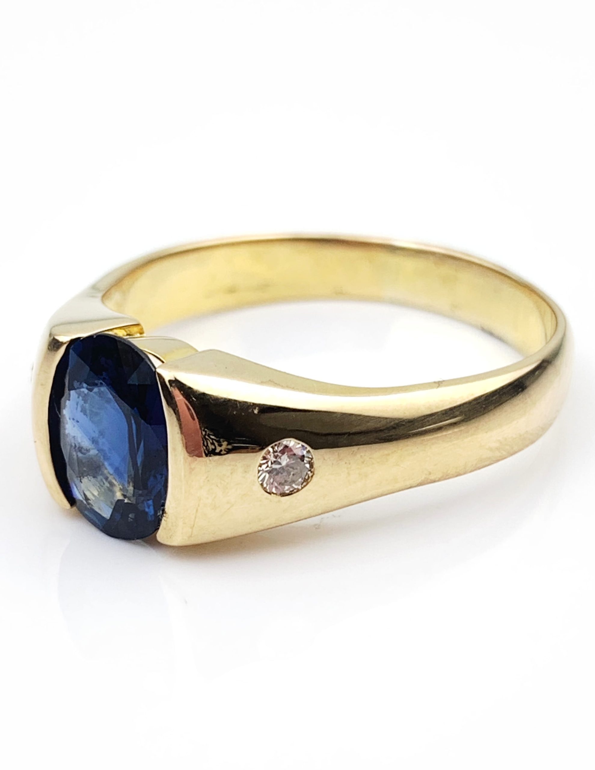 18ct Gold Mens Diamond & Sapphire Signet Ring