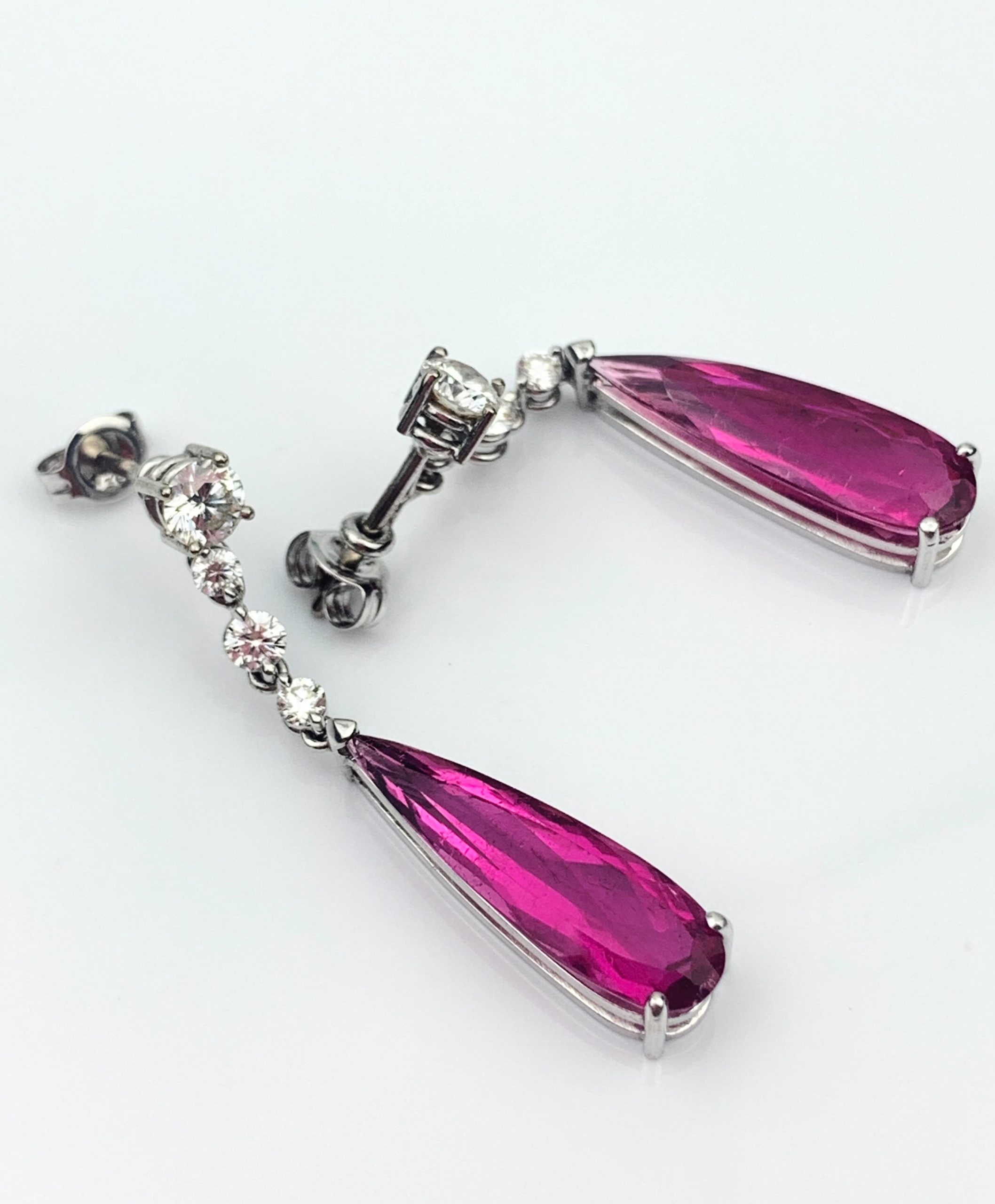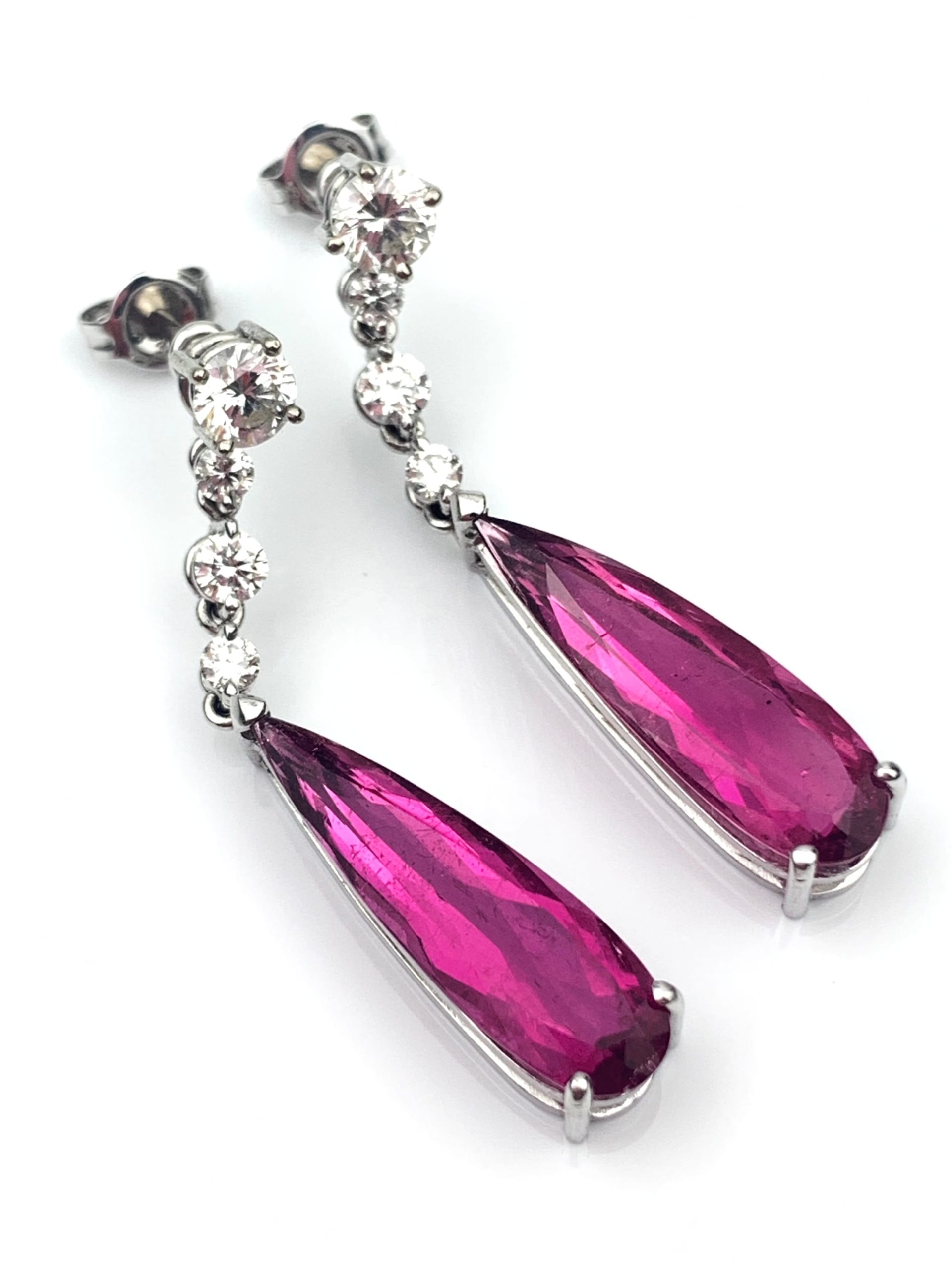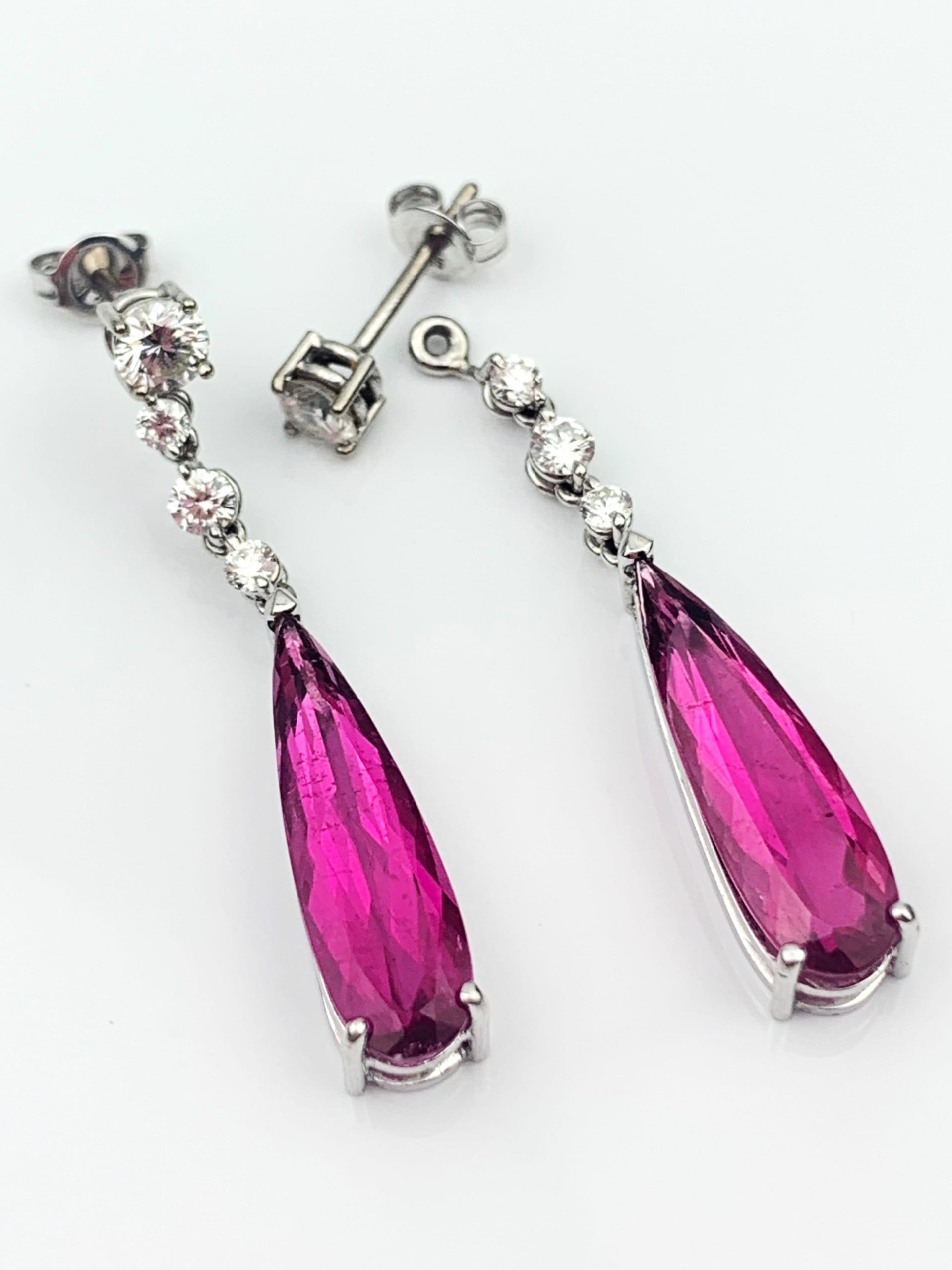 Stunning 18ct White Gold Drop Pink Tourmaline & Diamond Earrings