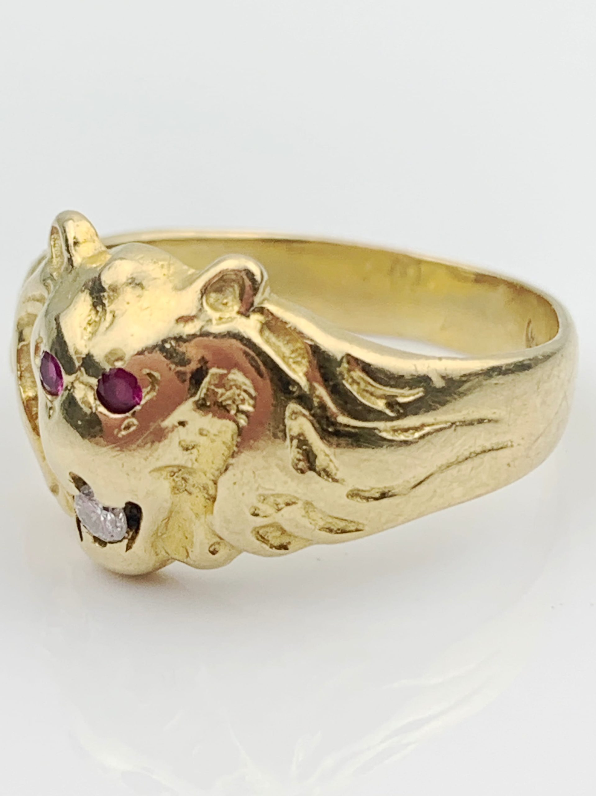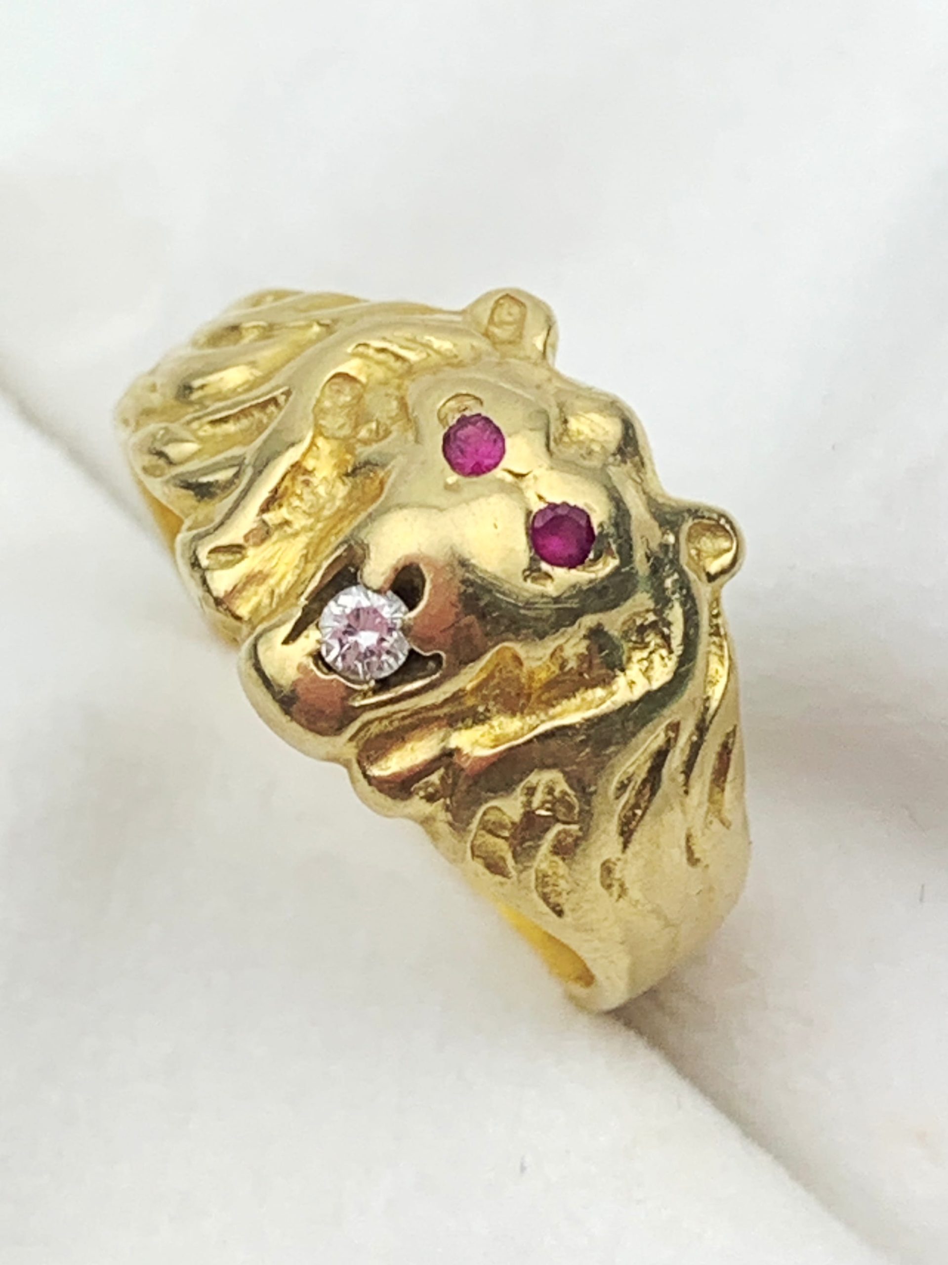 Bespoke 18ct Yellow Gold Ruby & Diamond Lions Head Ring