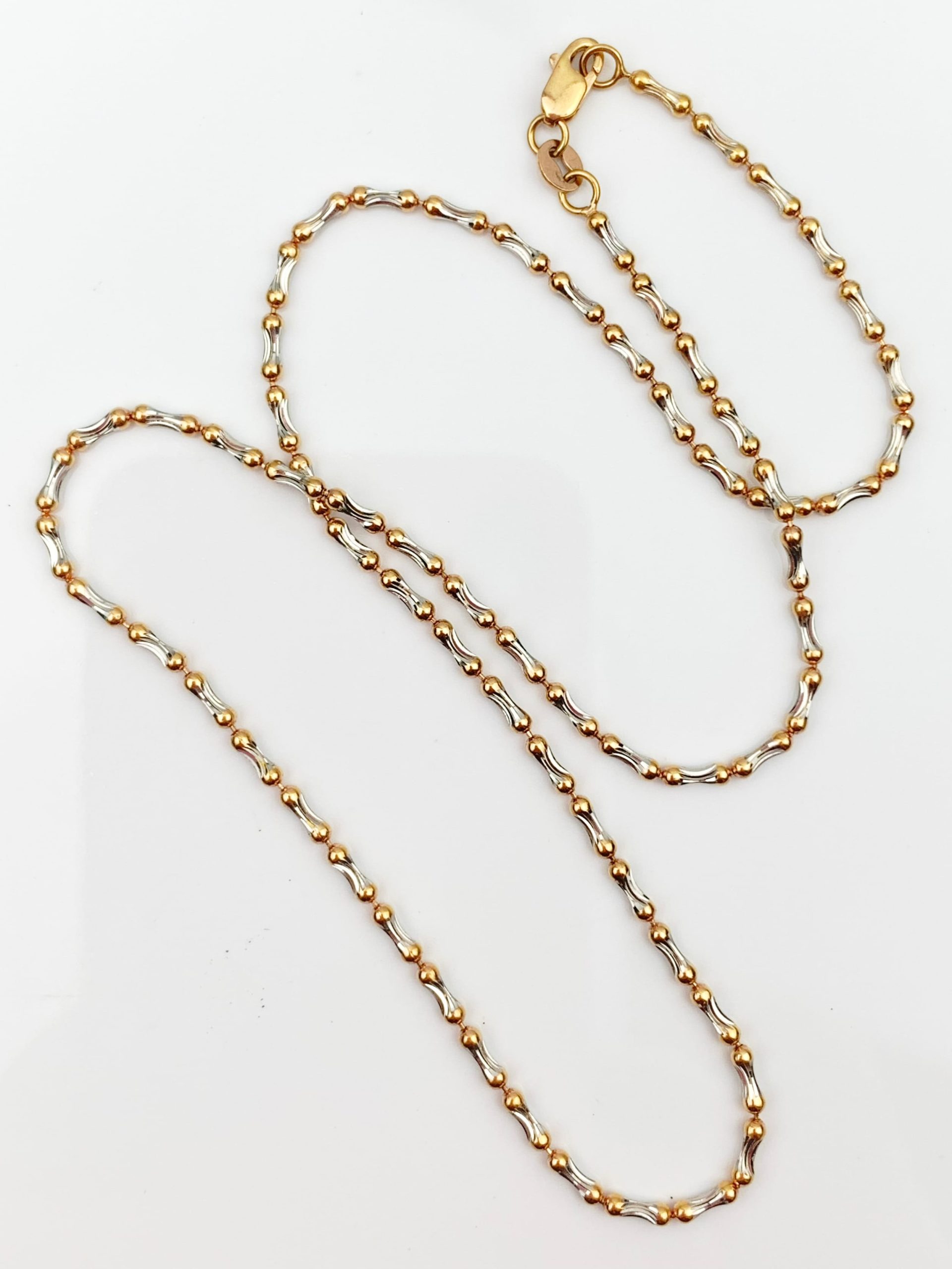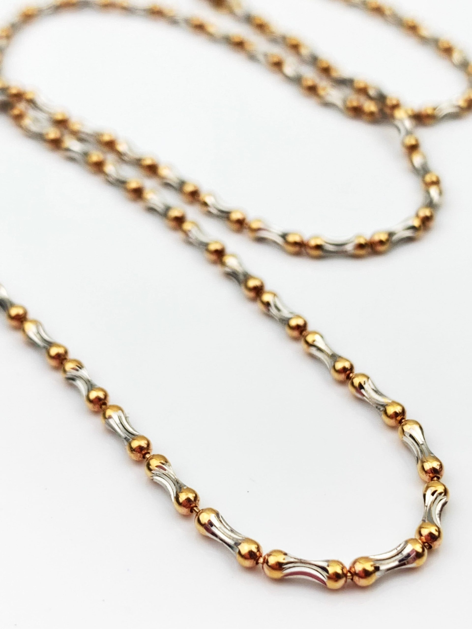 Impressive 21ct Two-tone Gold Necklace – Elongated Bead Design