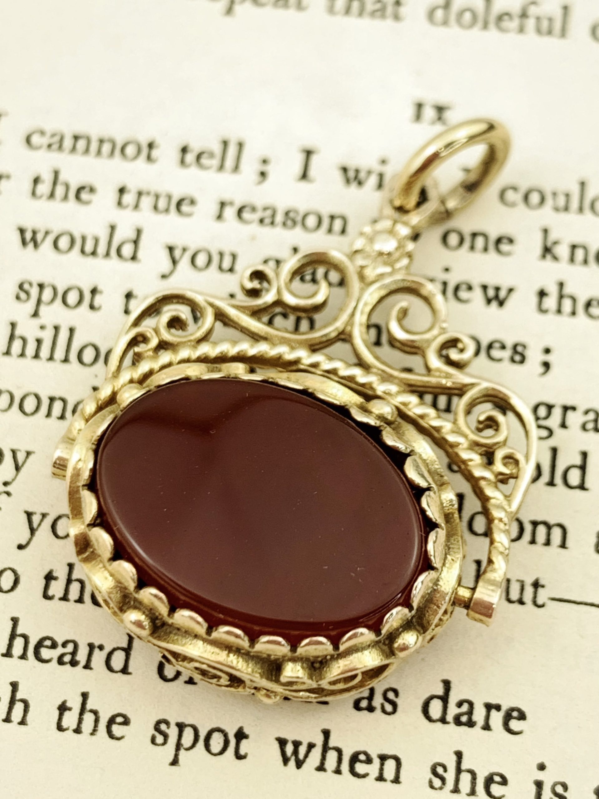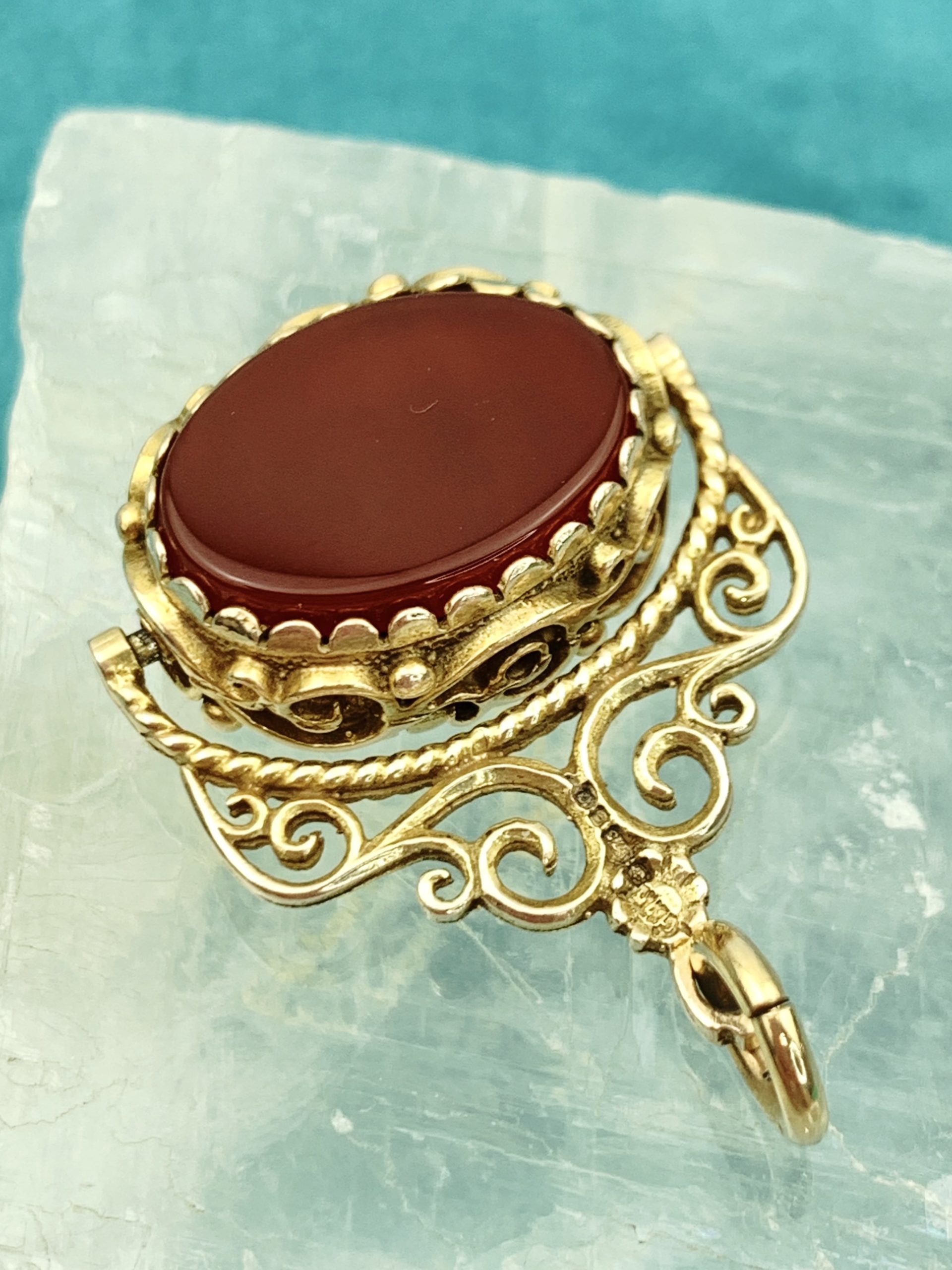 Beautiful 9ct Yellow Gold Bloodstone Fob Spinner Pendant