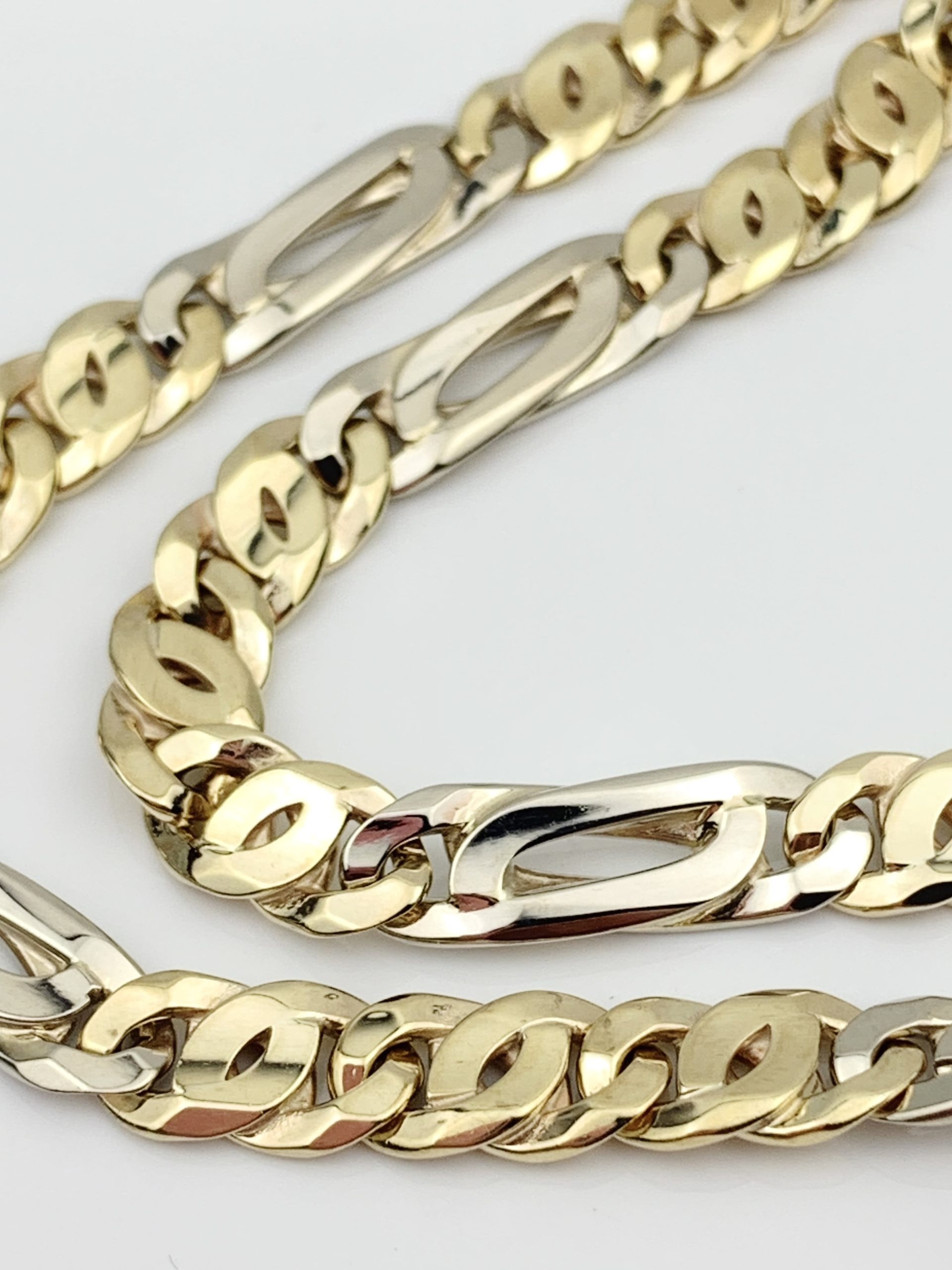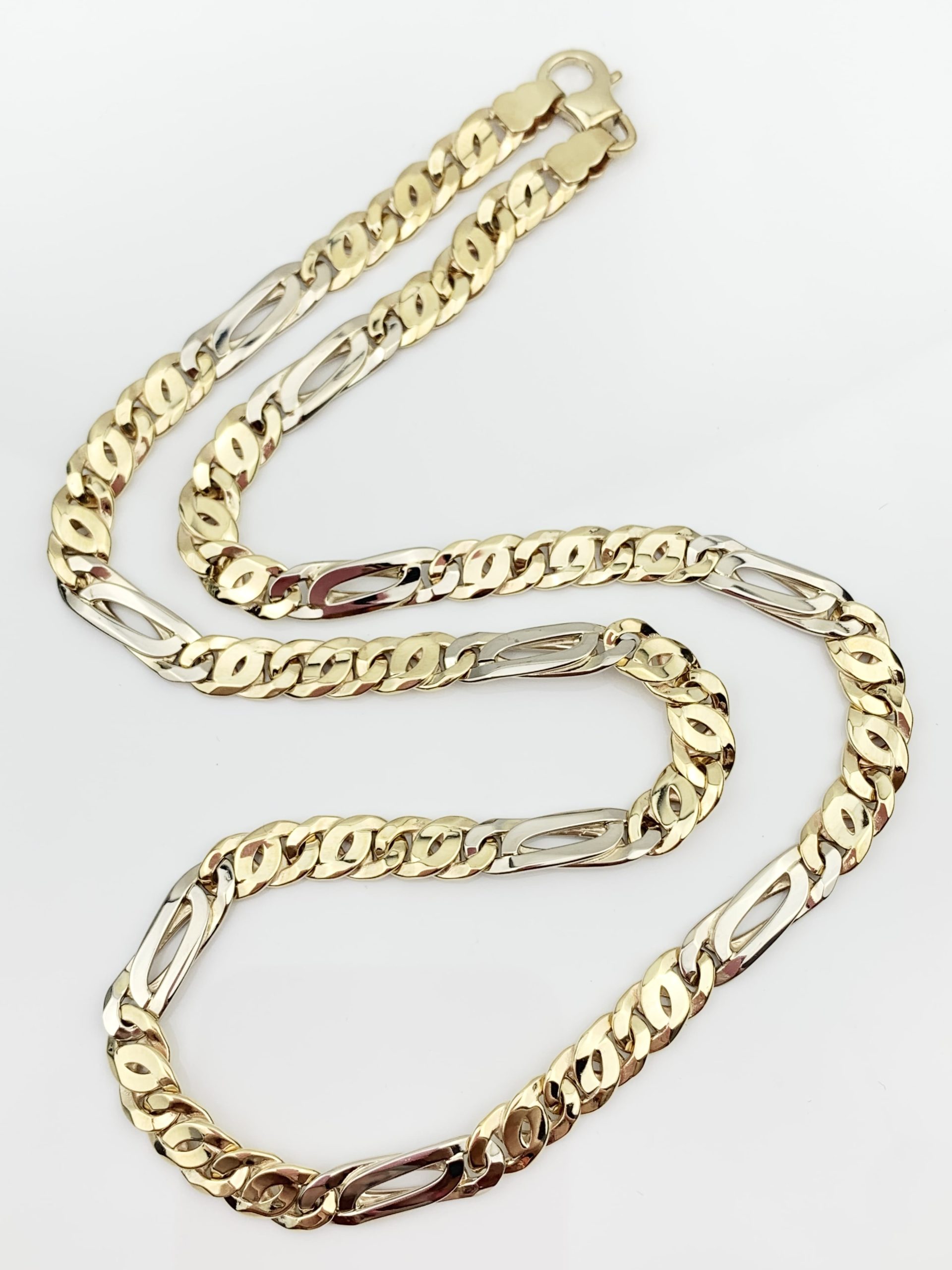 Impressive 9ct Yellow/White Gold Chain Figaro Link Necklace with Large Lobster Clasp