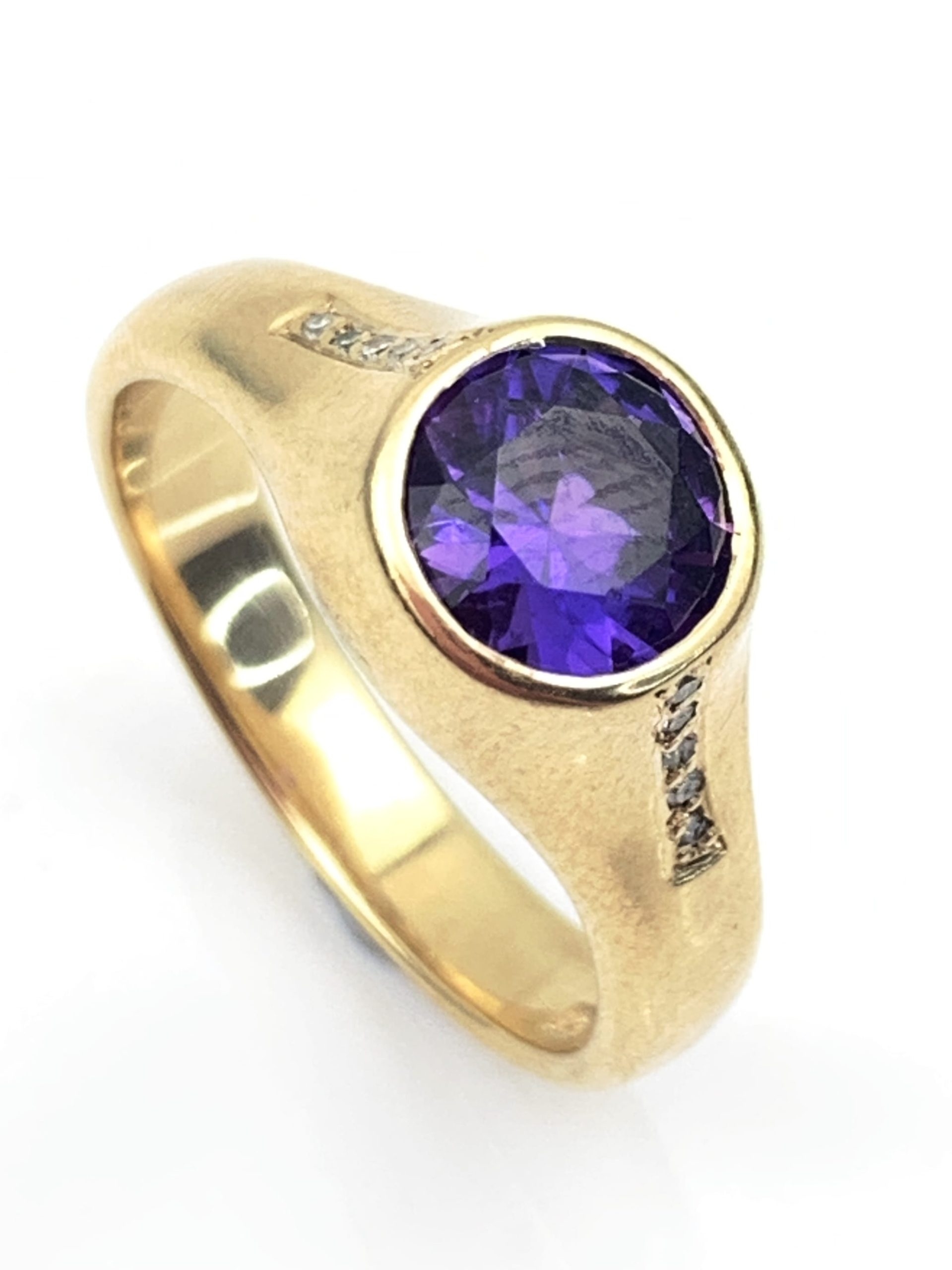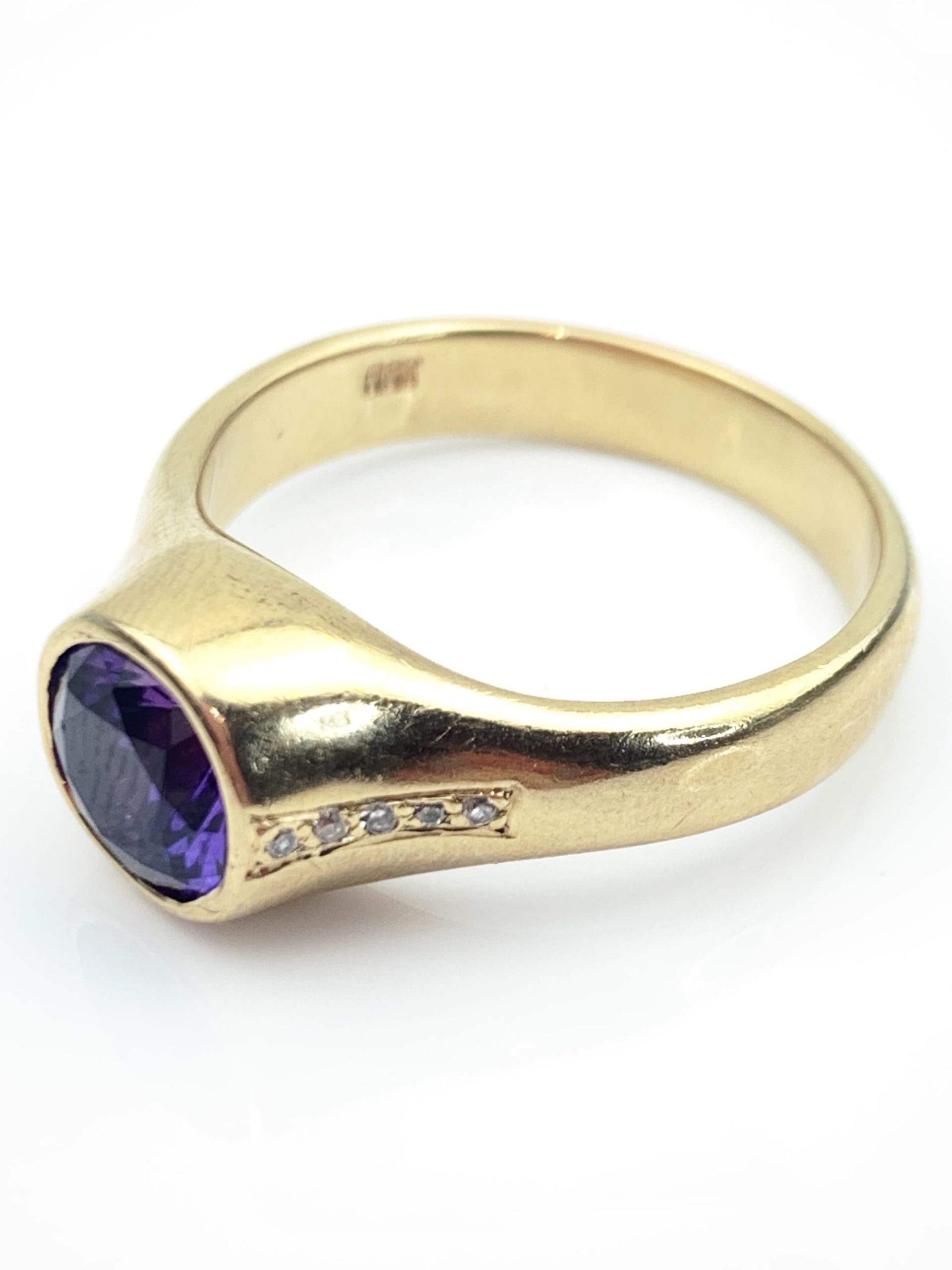 Impressive Solid 9ct Yellow Gold Diamond & Amethyst Ring – Signet Ring