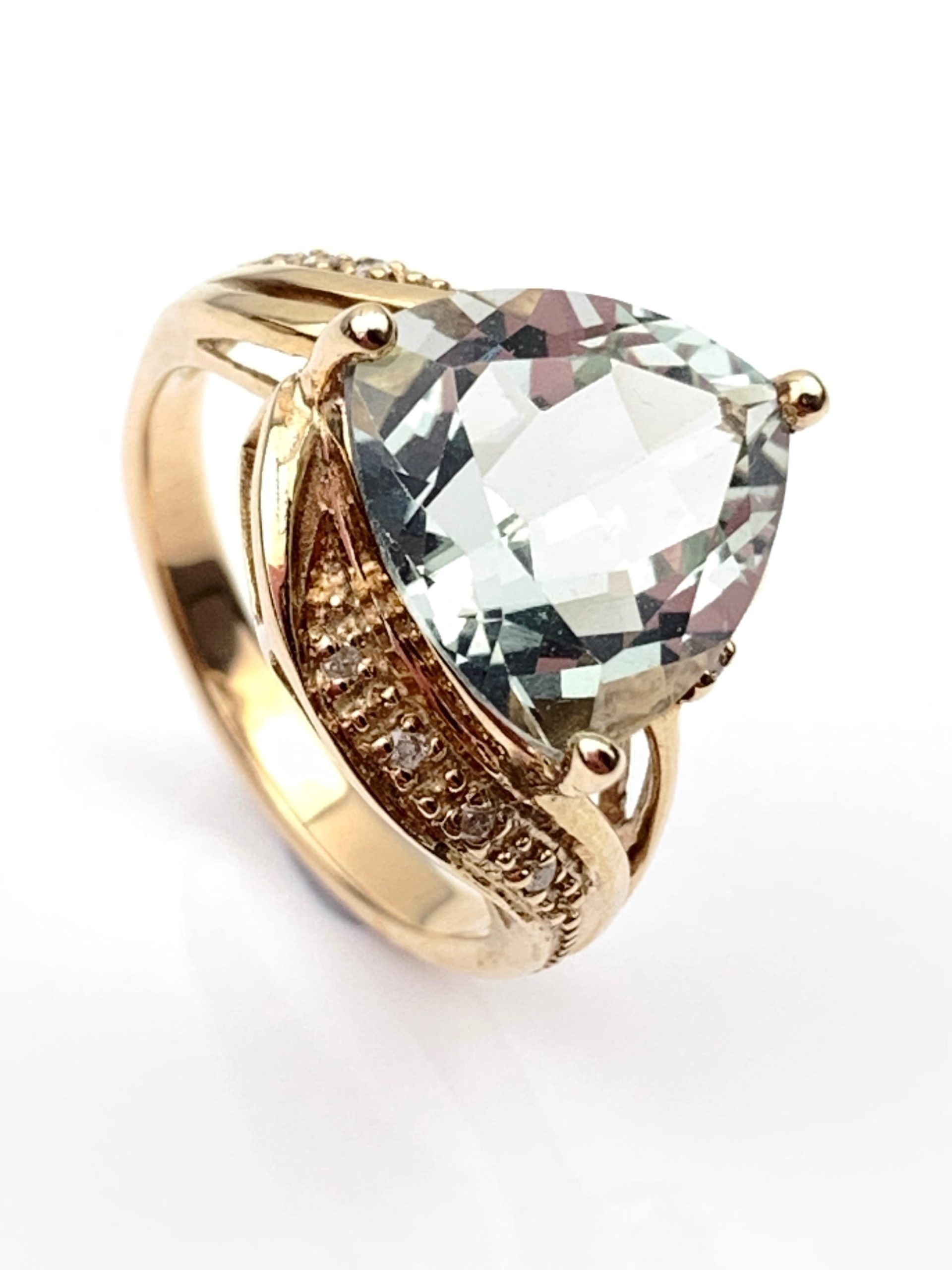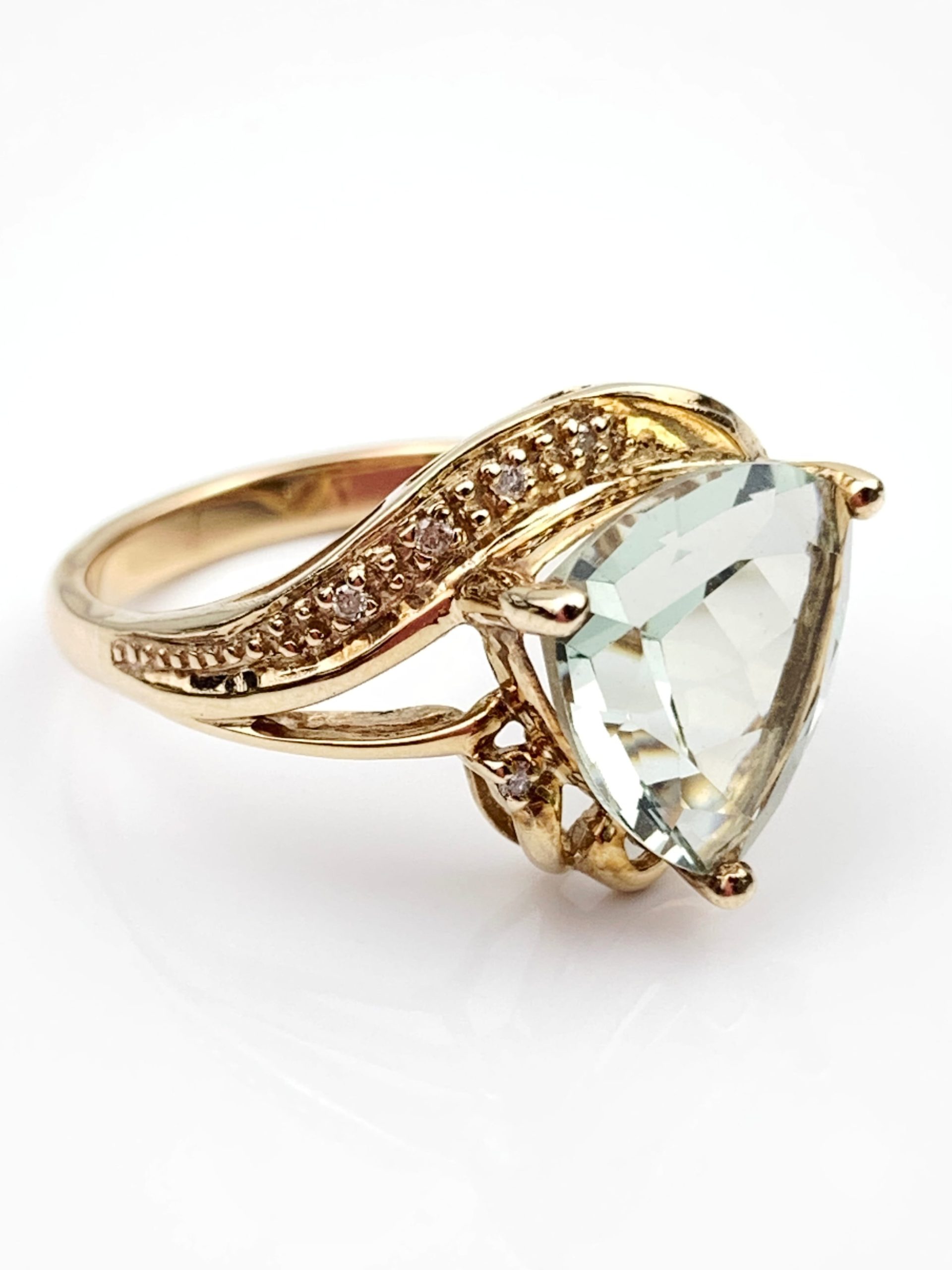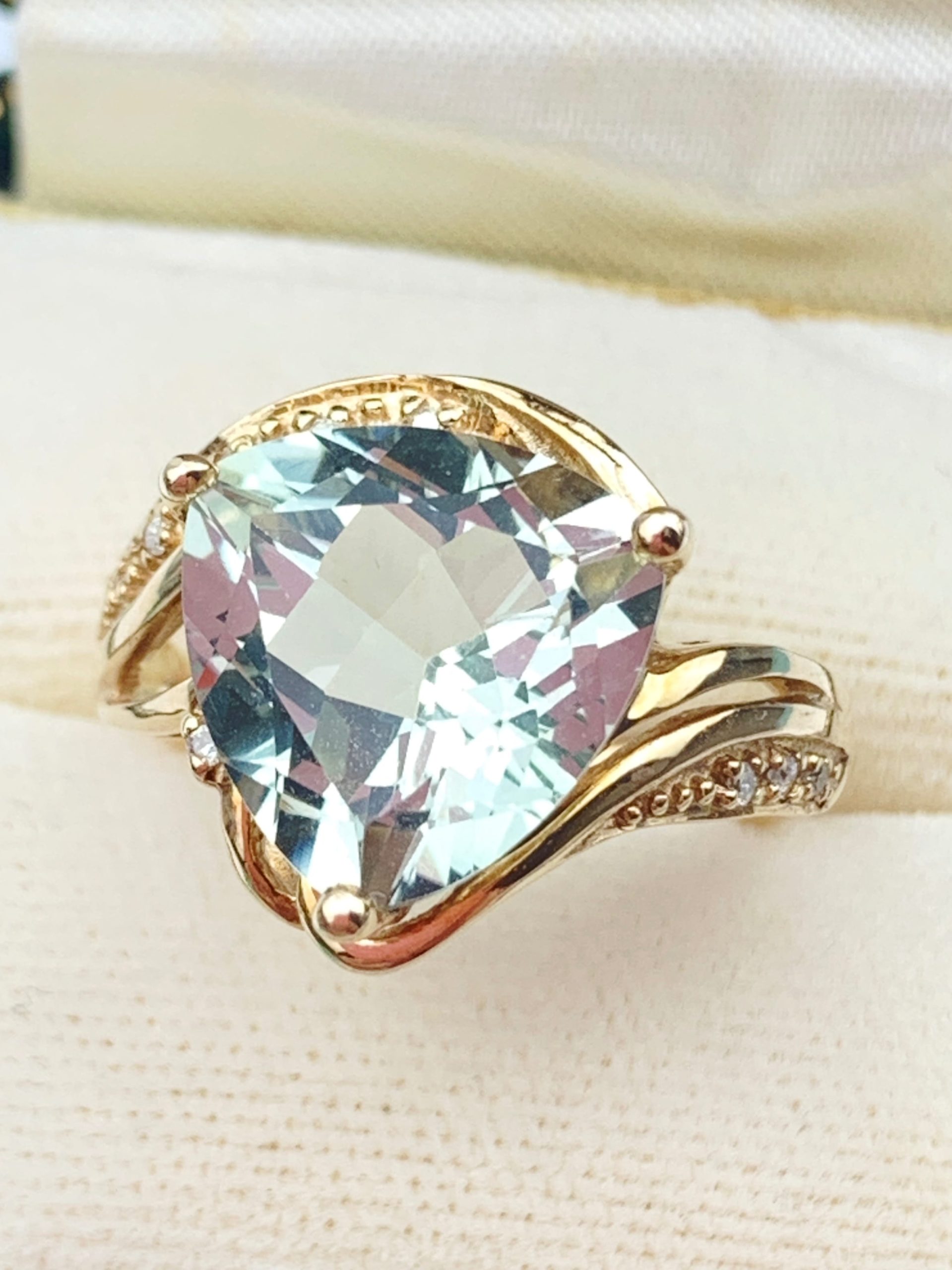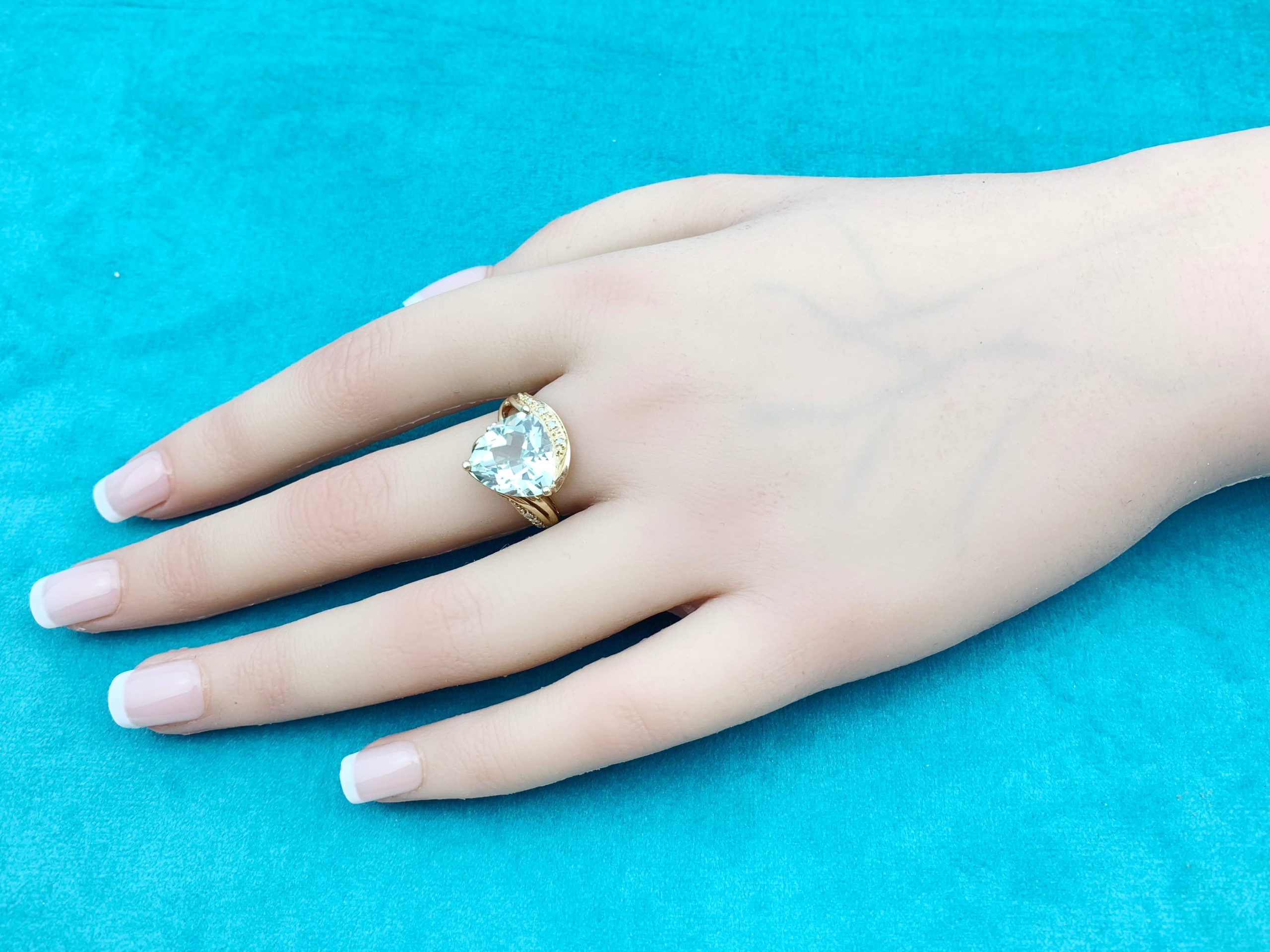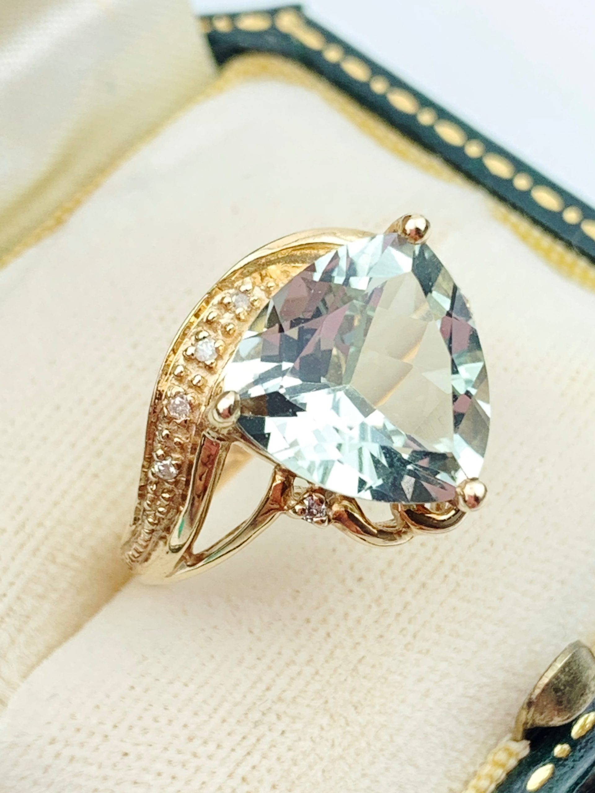 Stunning 9ct Yellow Gold Diamond & Aquamarine Dress Ring