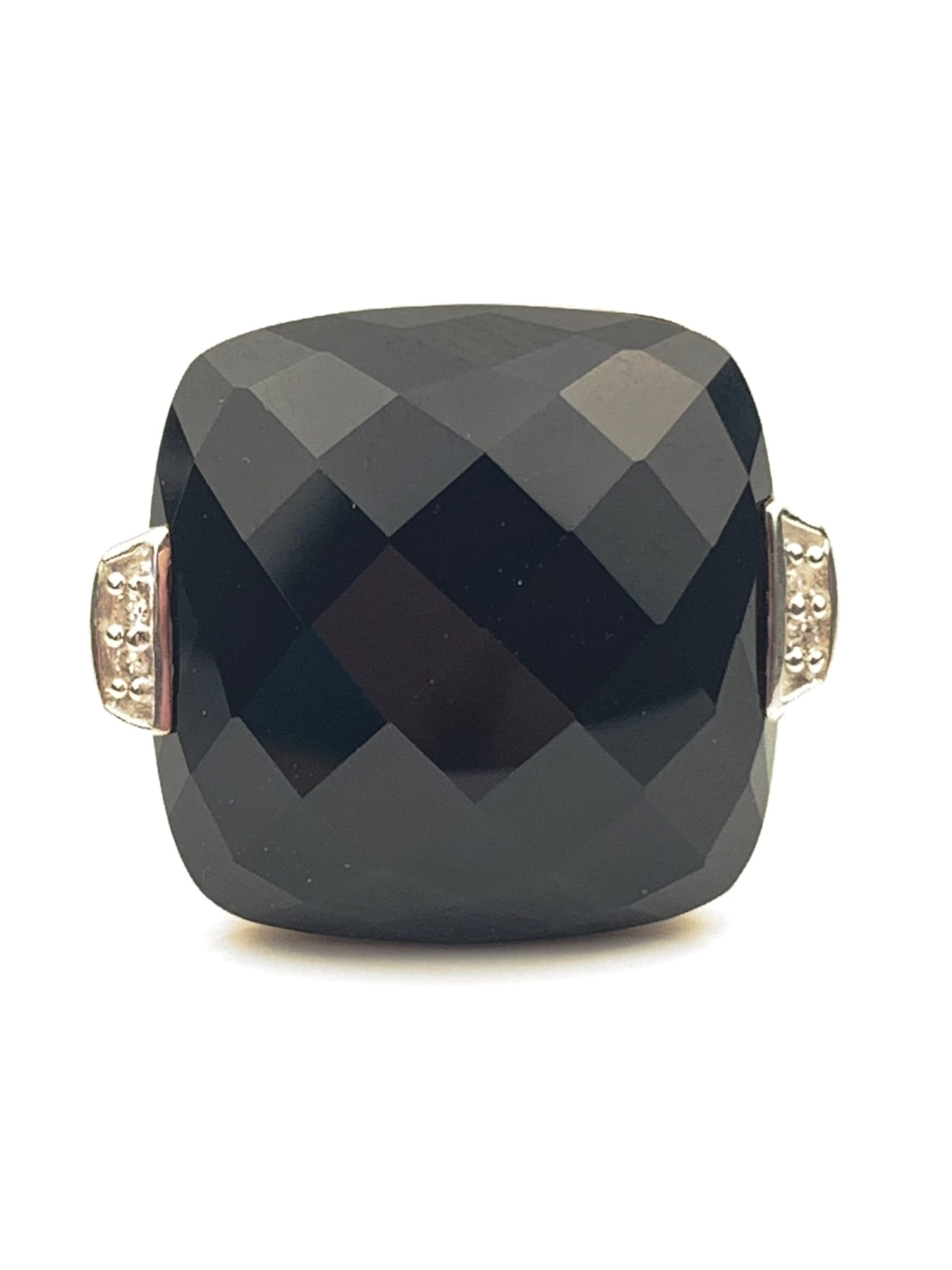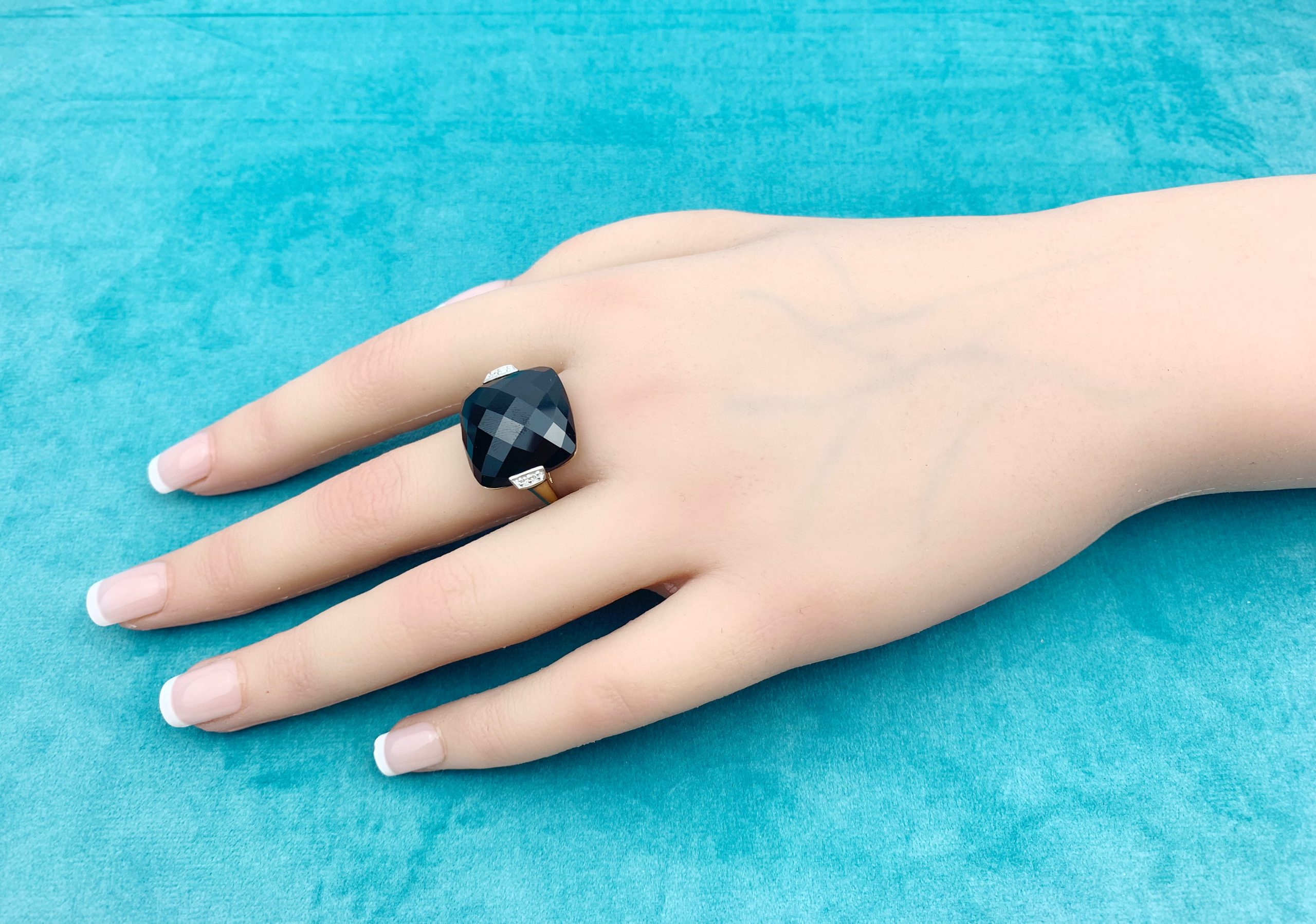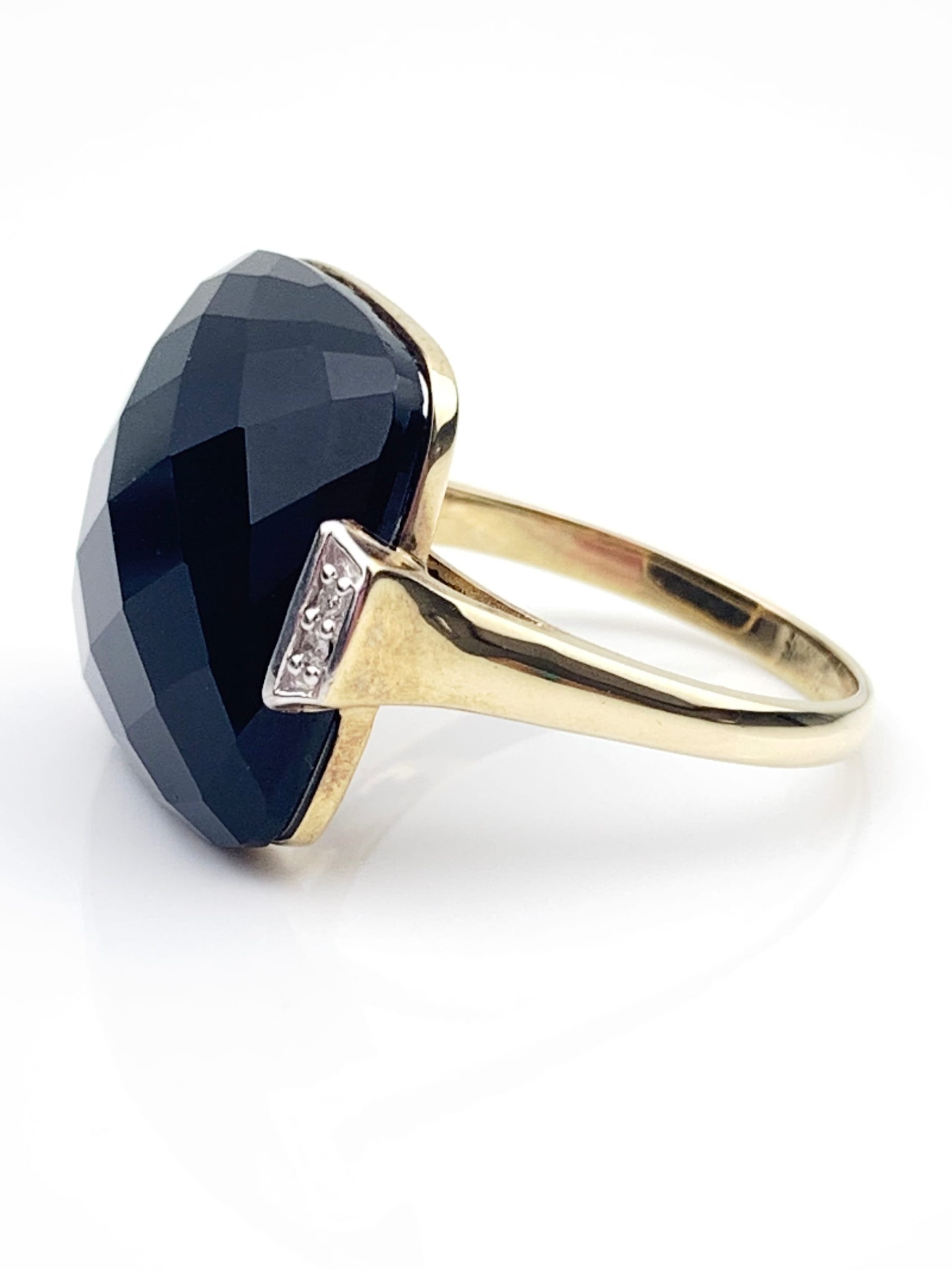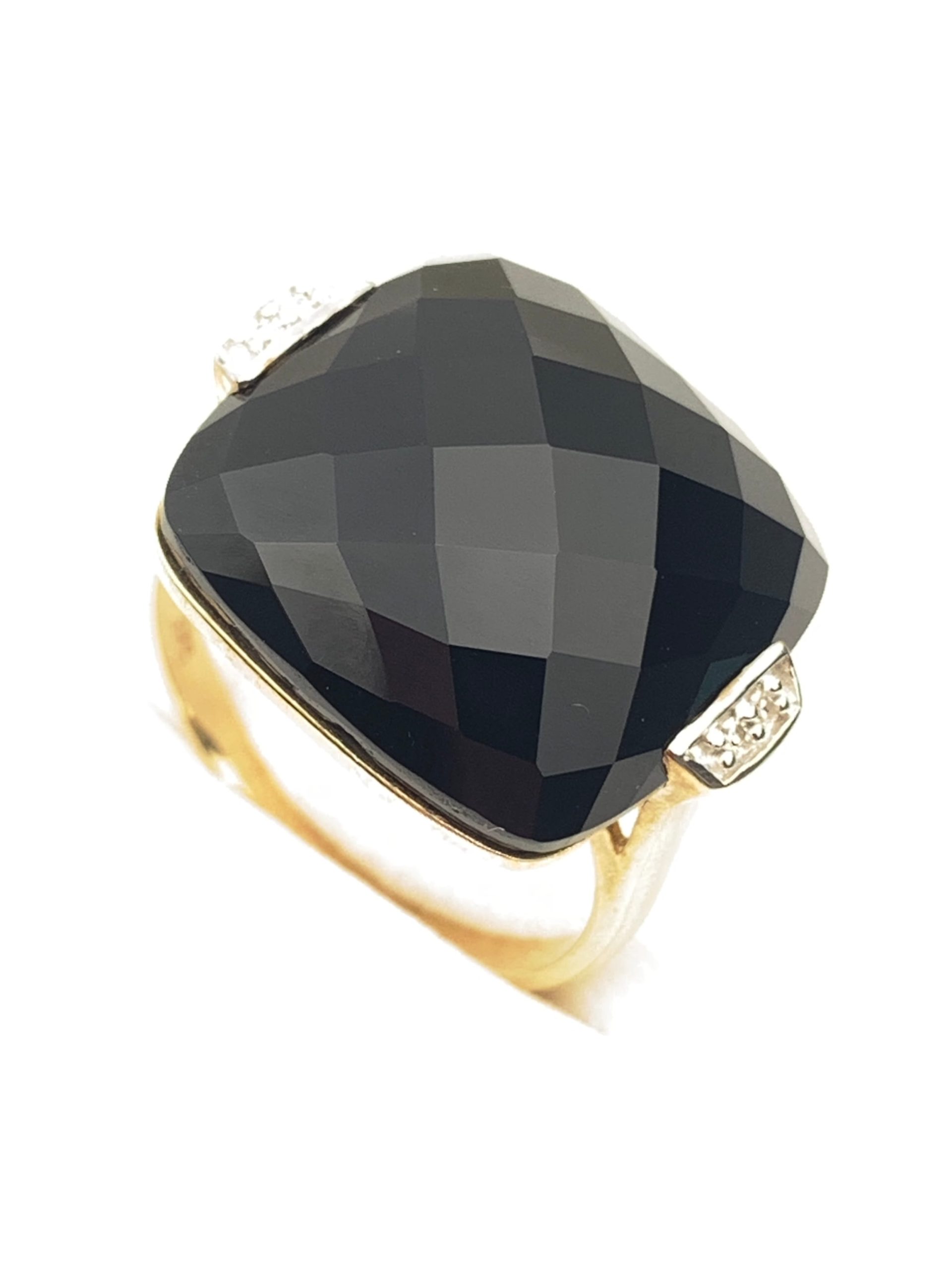 Bold 9ct Yellow Gold Cocktail Ring – Diamond & Onyx Ring