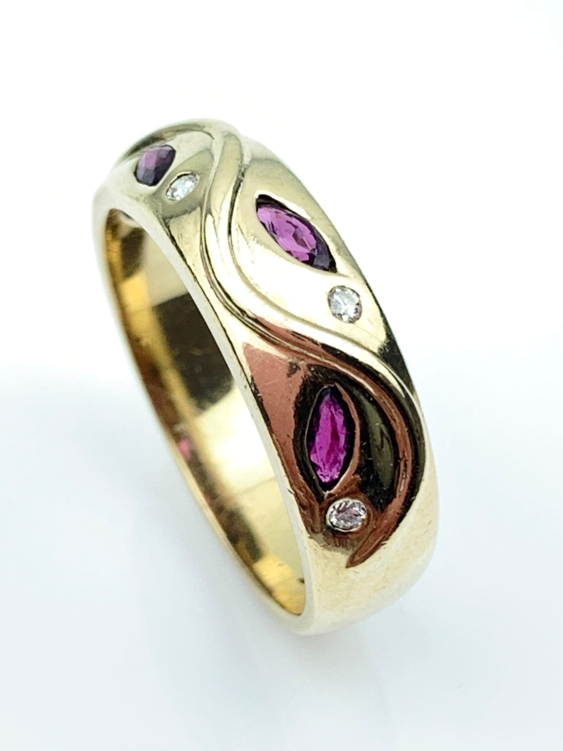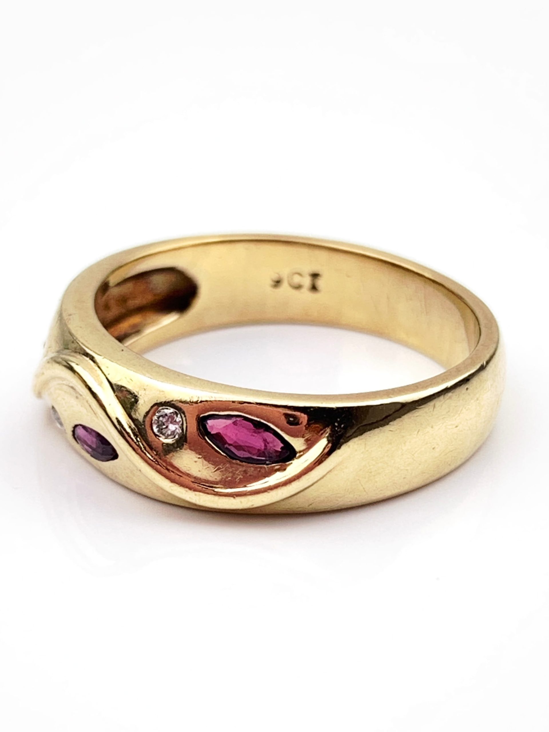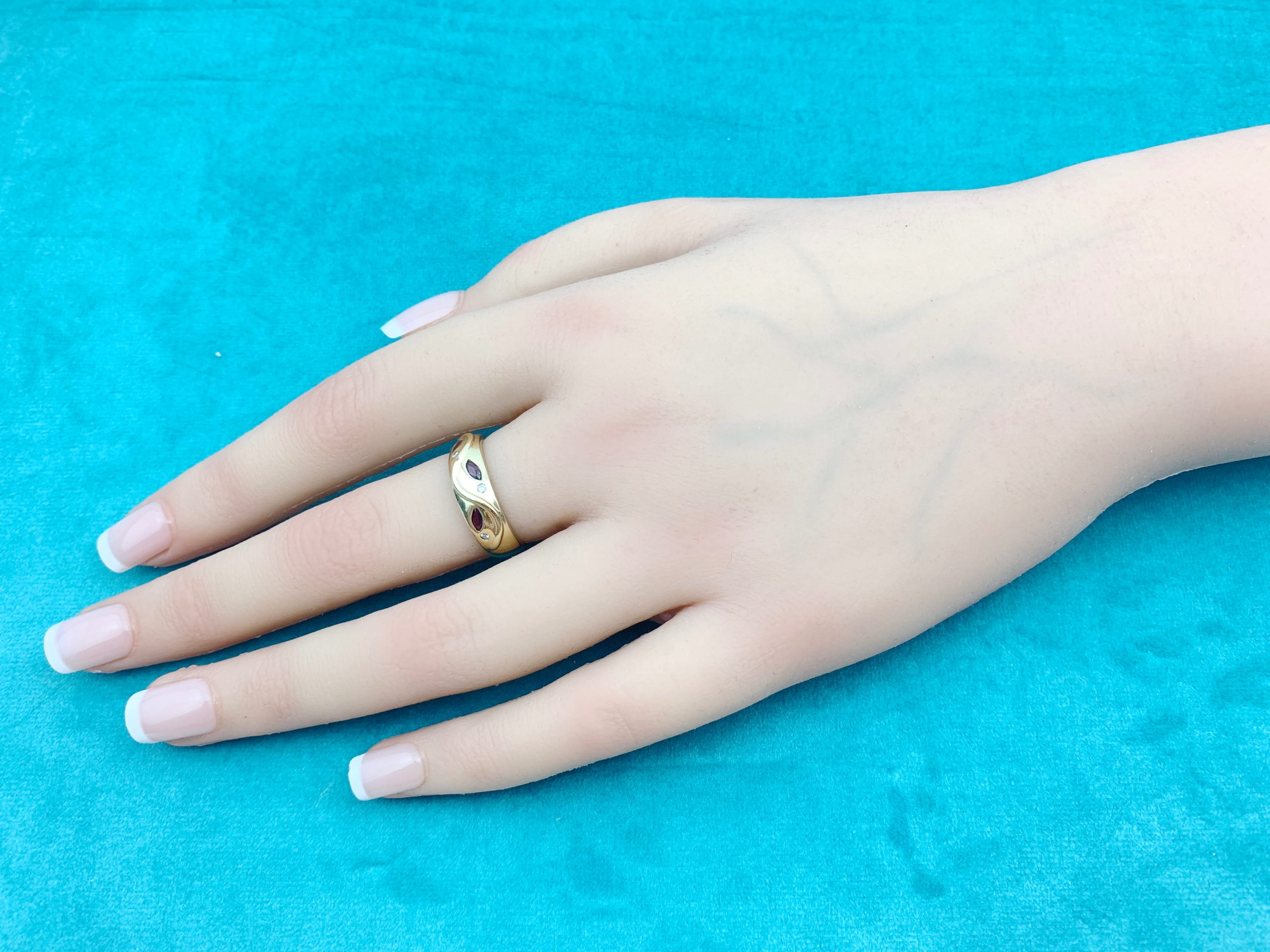 Vintage 9ct Yellow Gold Diamond & Ruby Gypsy Ring