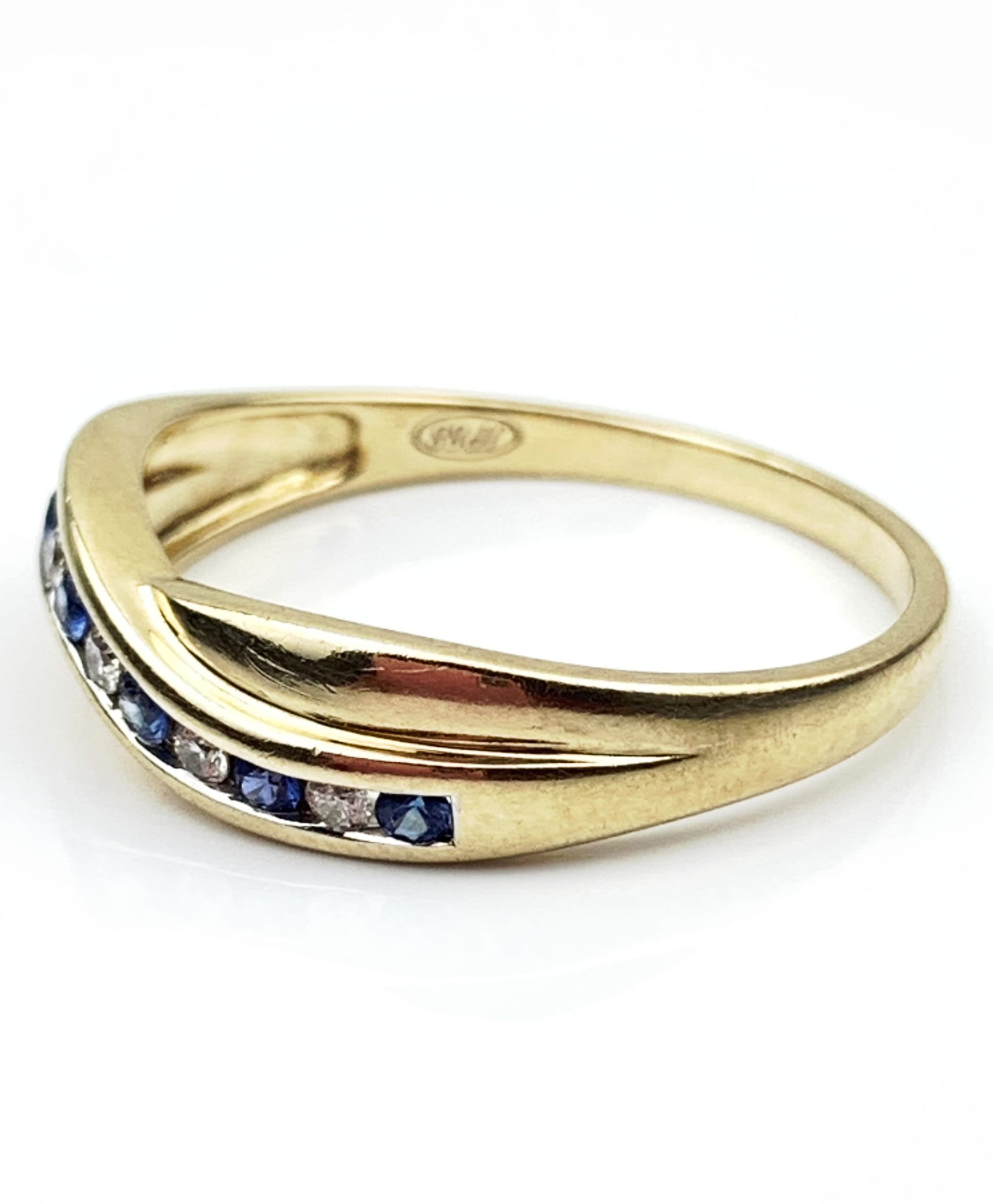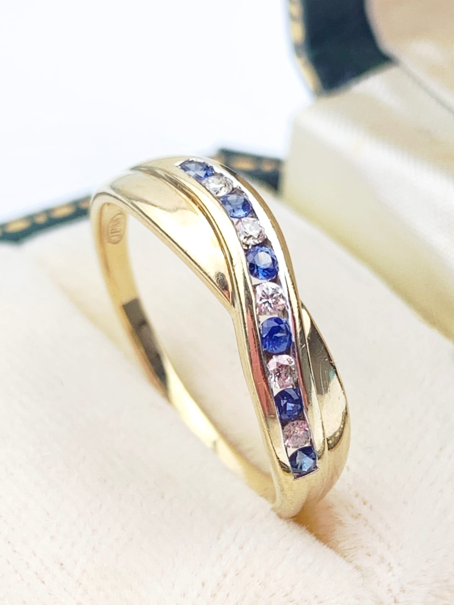 Pretty 9ct Yellow Gold Diamond & Sapphire Ring