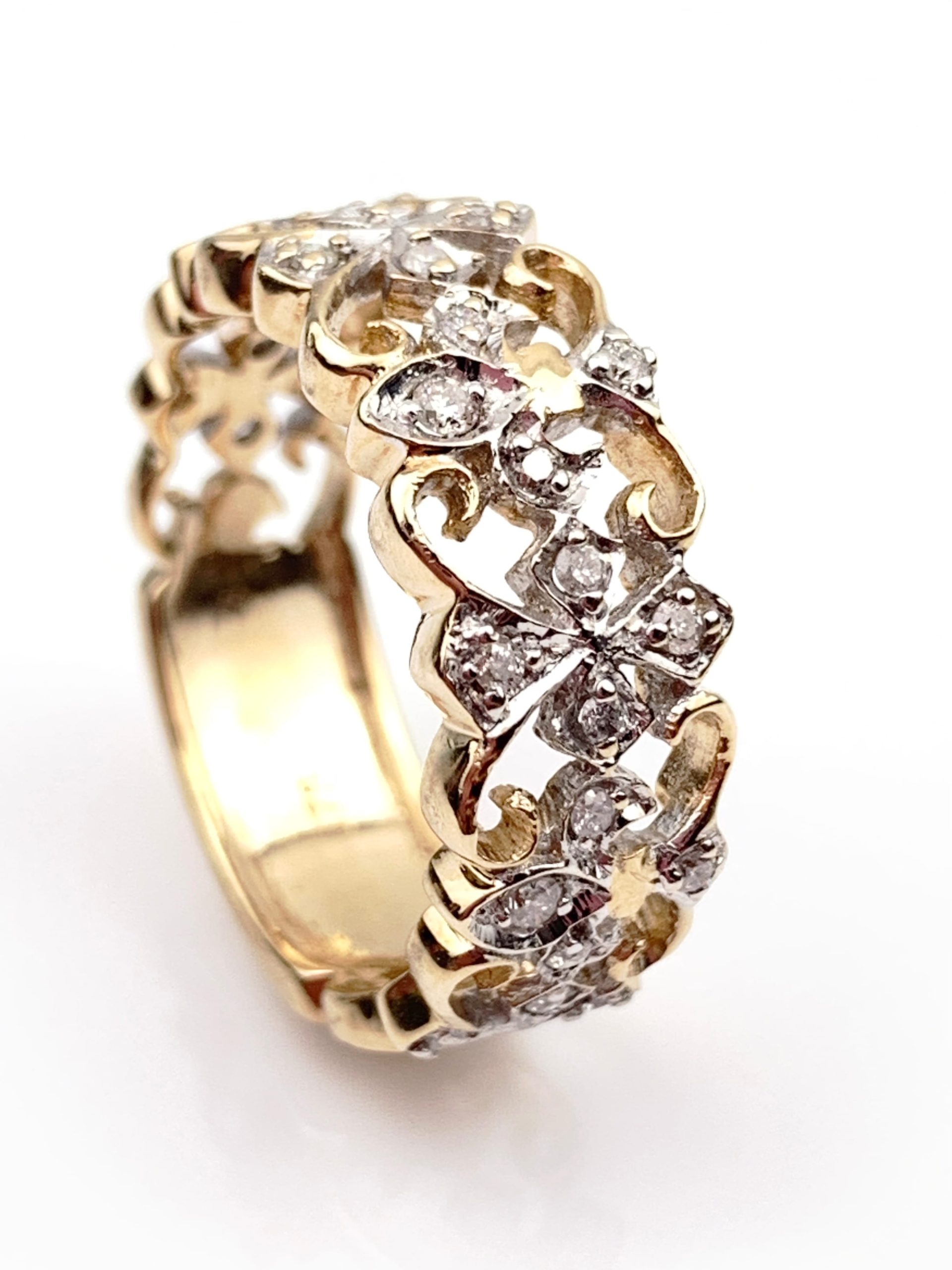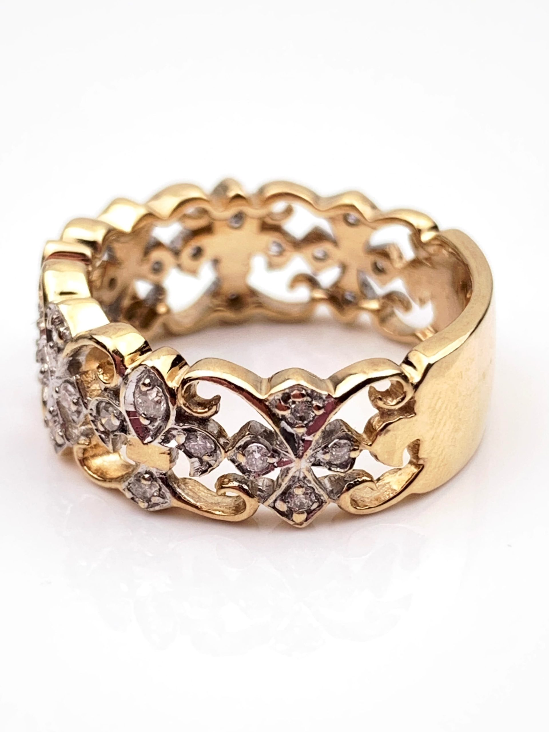 Impressive 9ct Yellow Gold Diamond Ring – Fleur de Lis Design