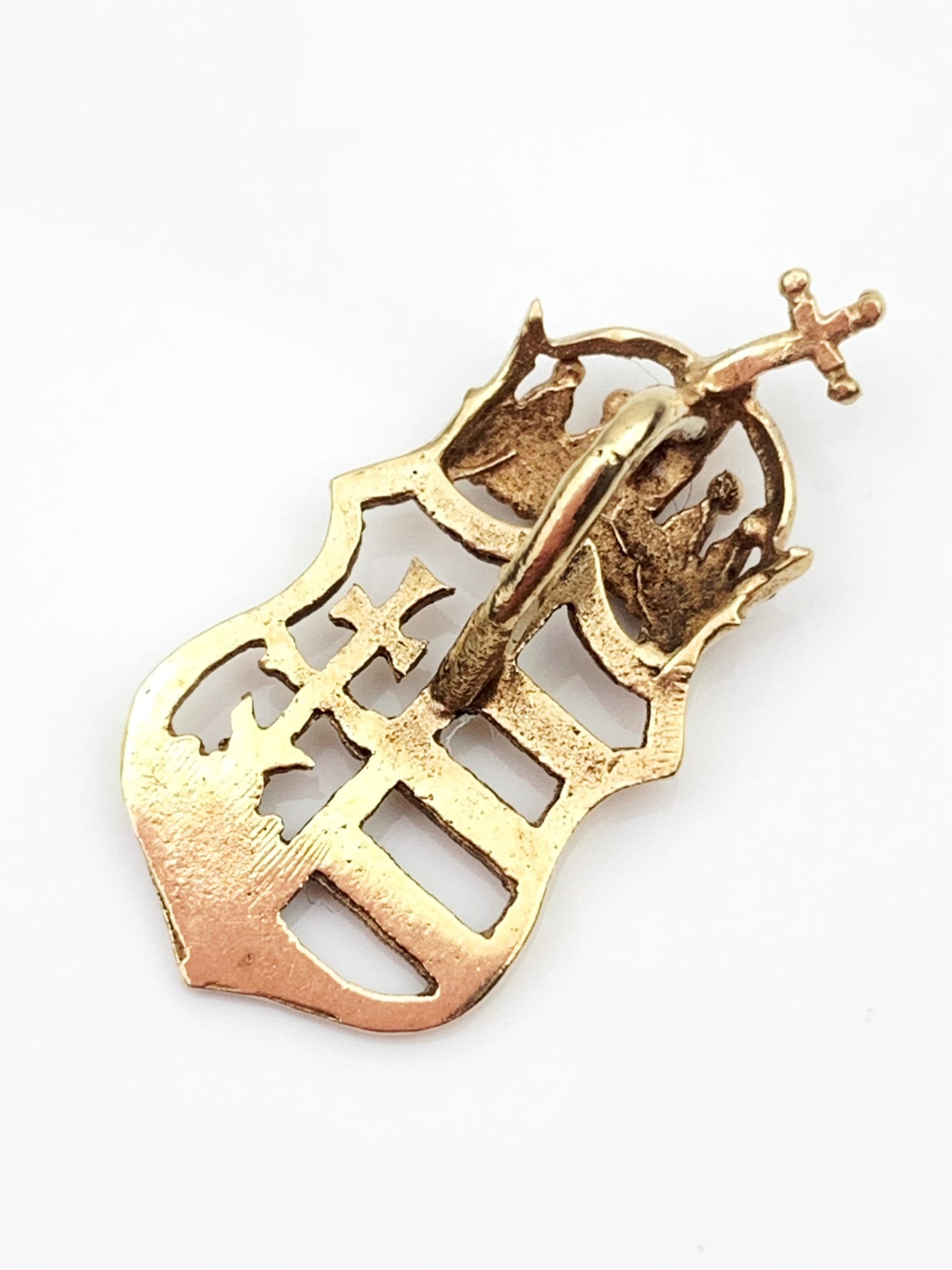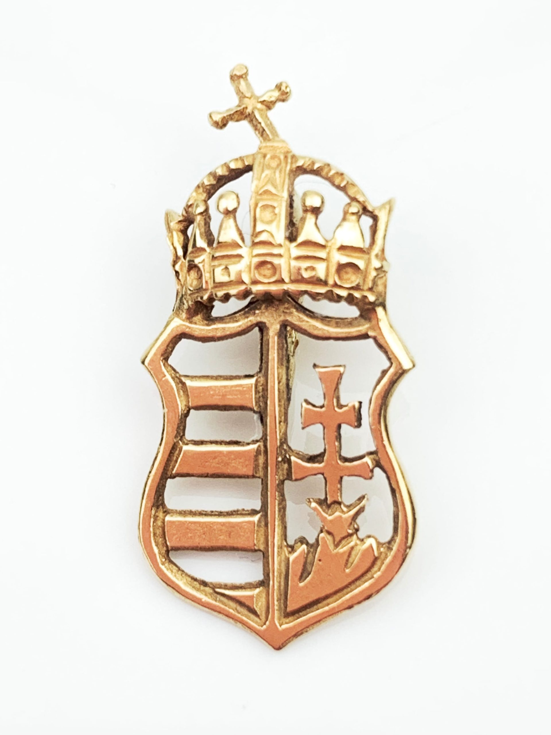 Solid 9ct Gold Hungarian Coat Of Arms Pendant Topped with The Holy Crown of Hungary (The Crown of Saint Stephen)
