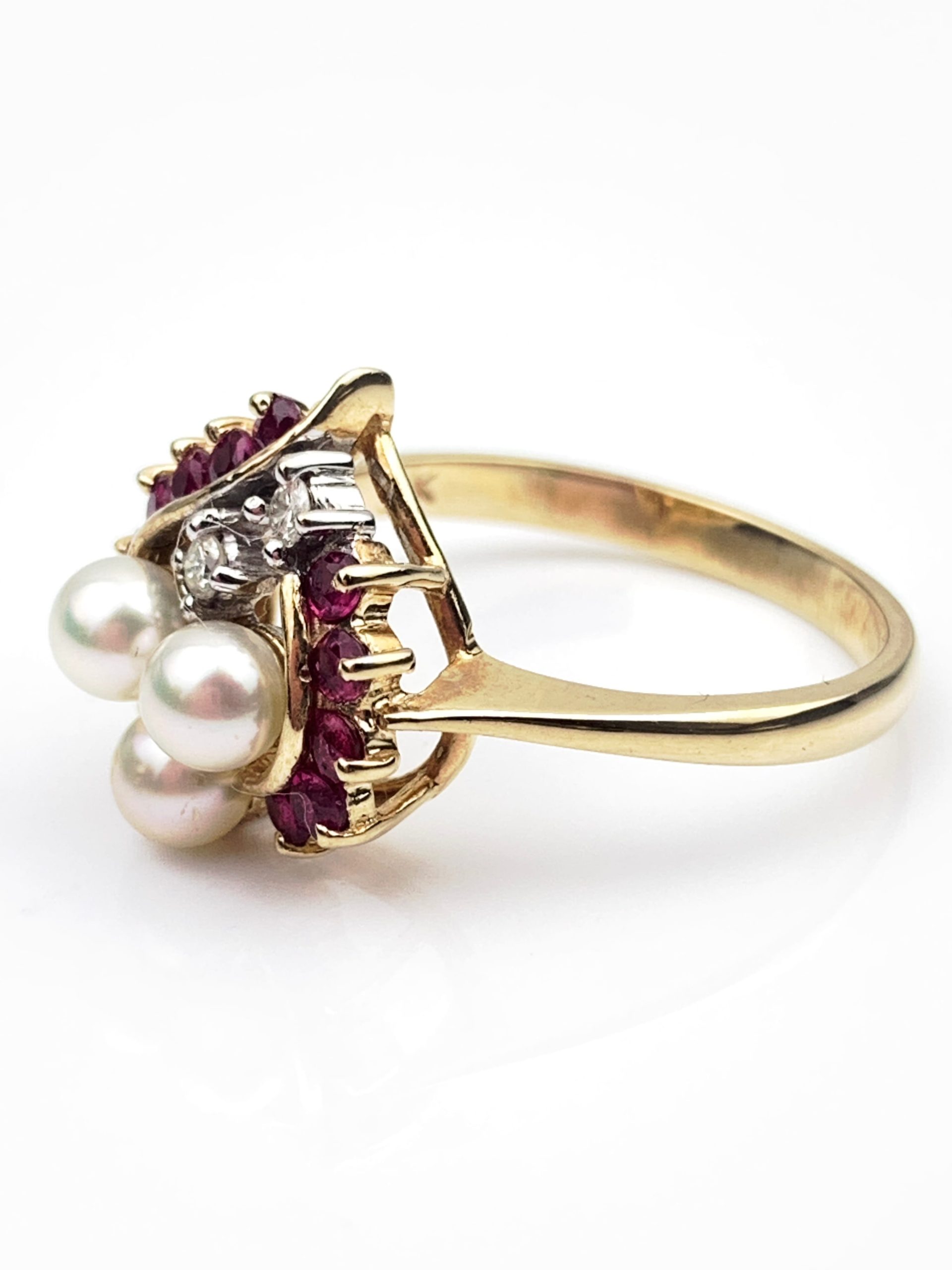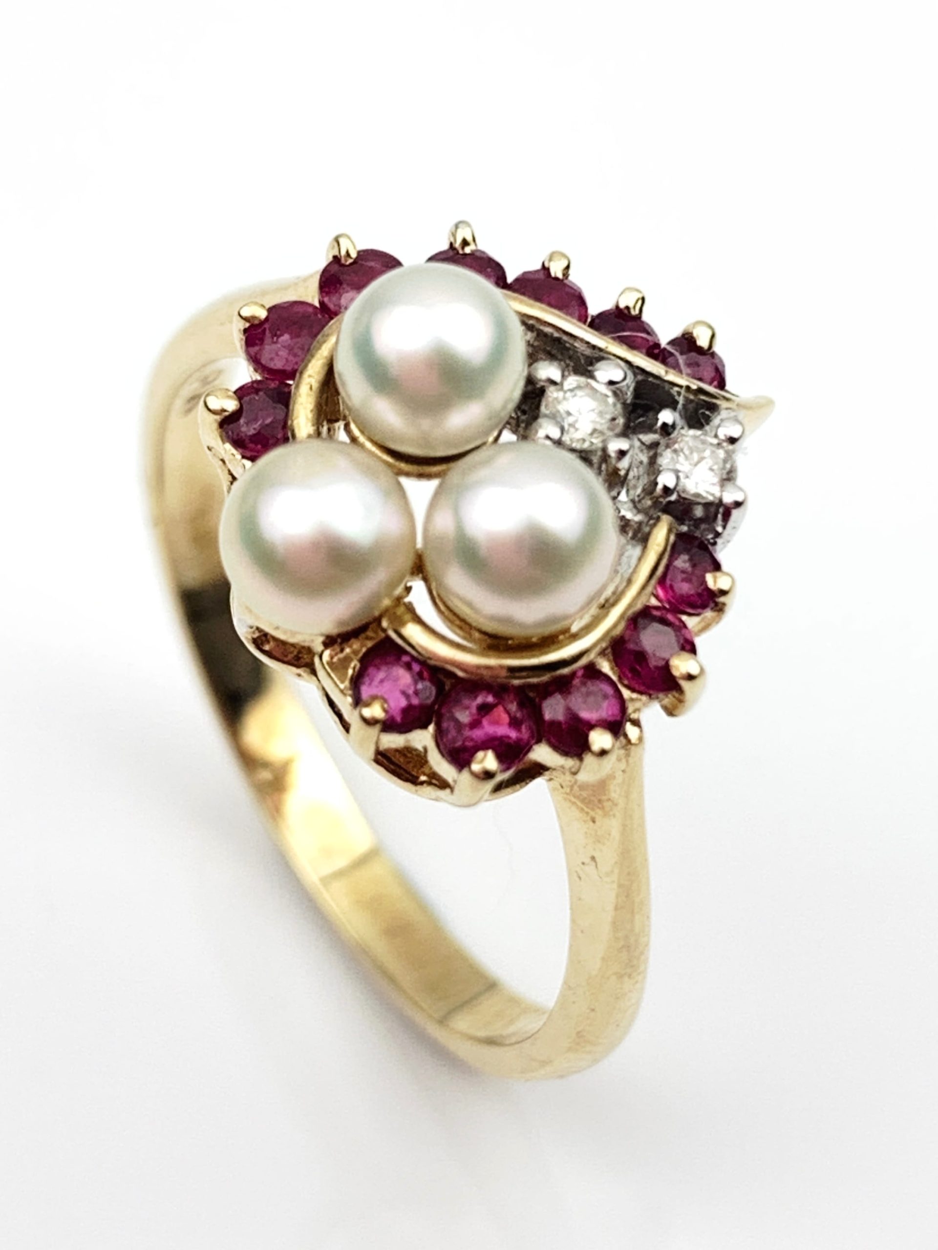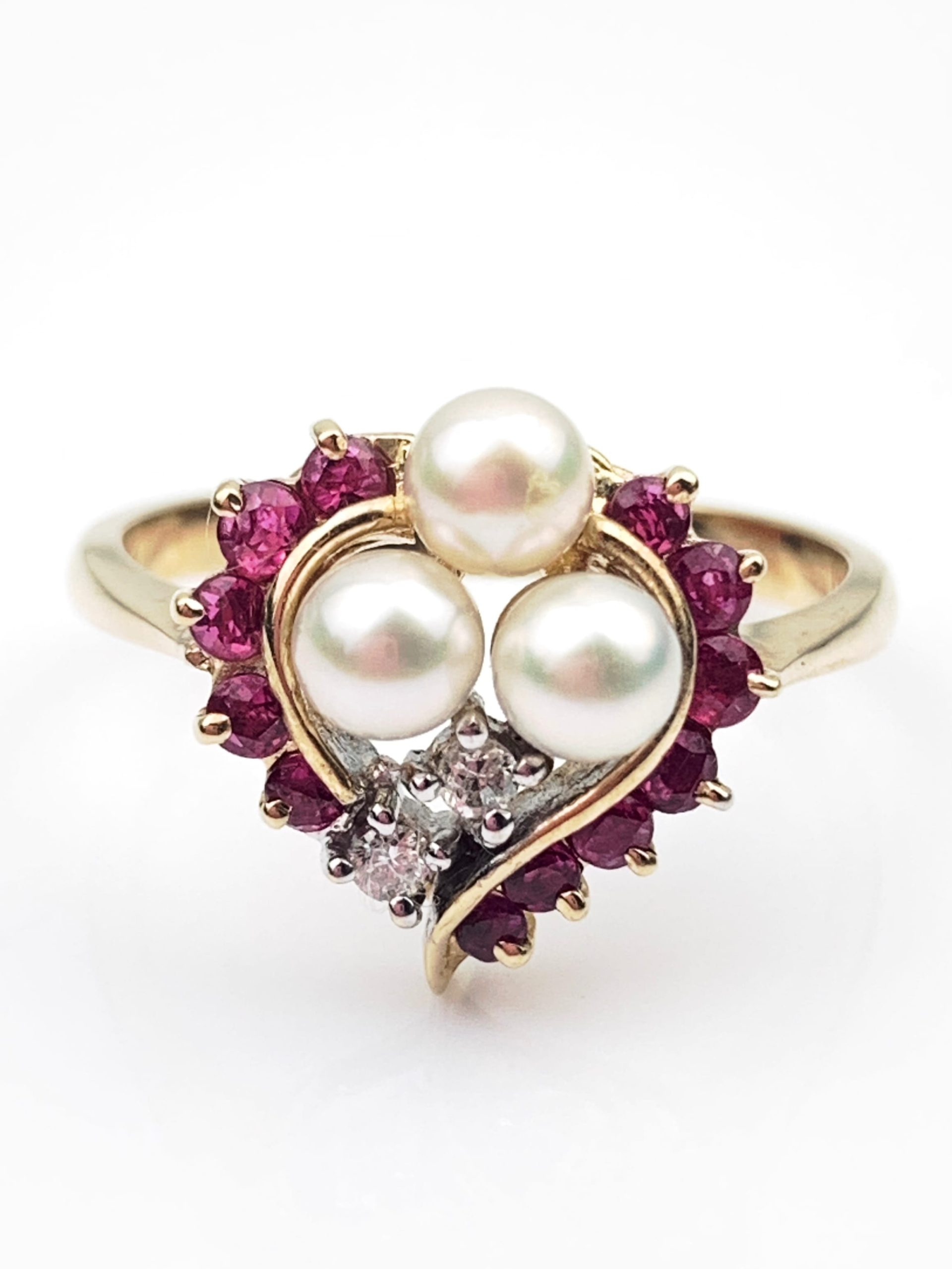 9ct Gold Pearl, Ruby & Diamond Heart Ring