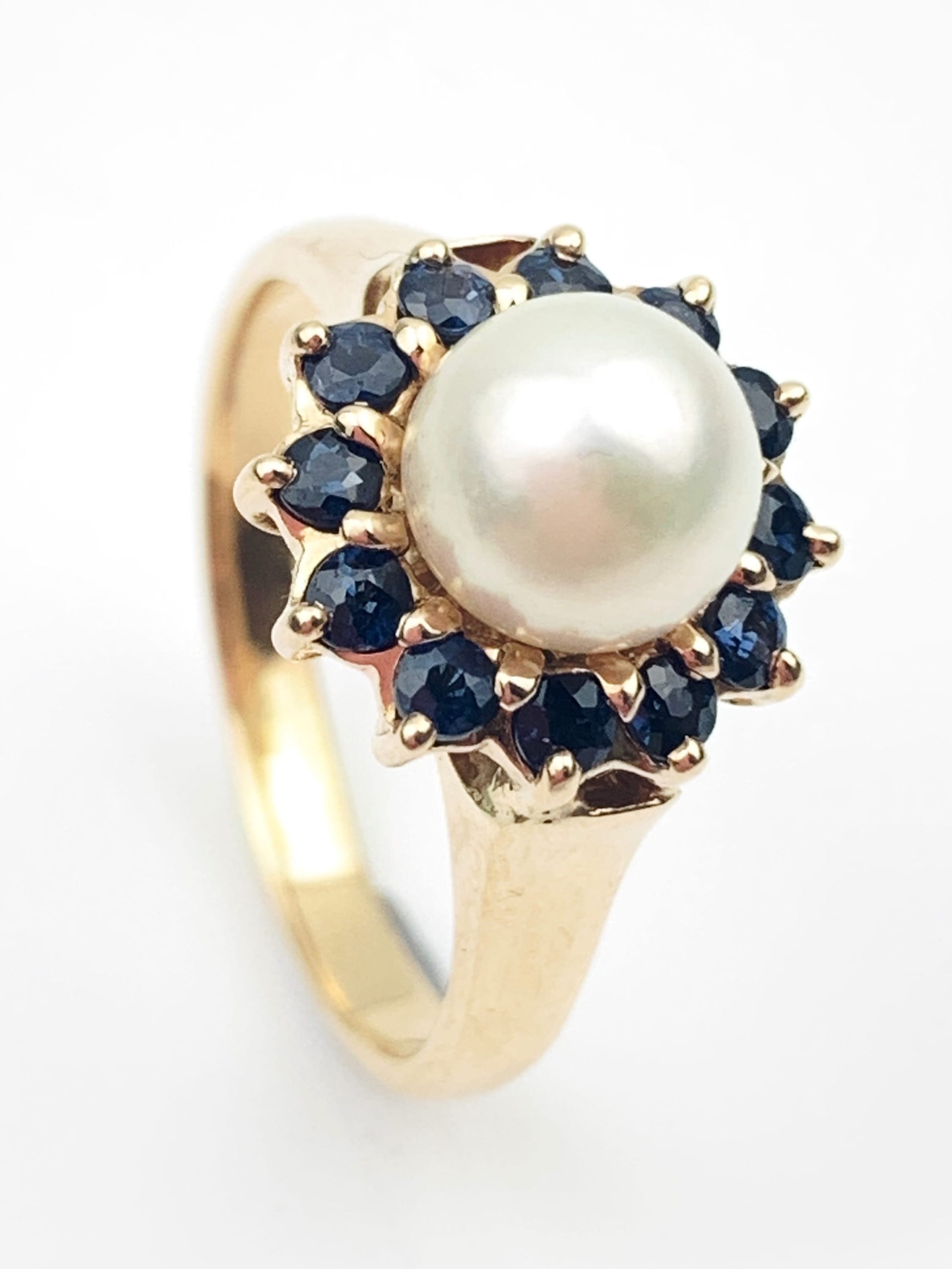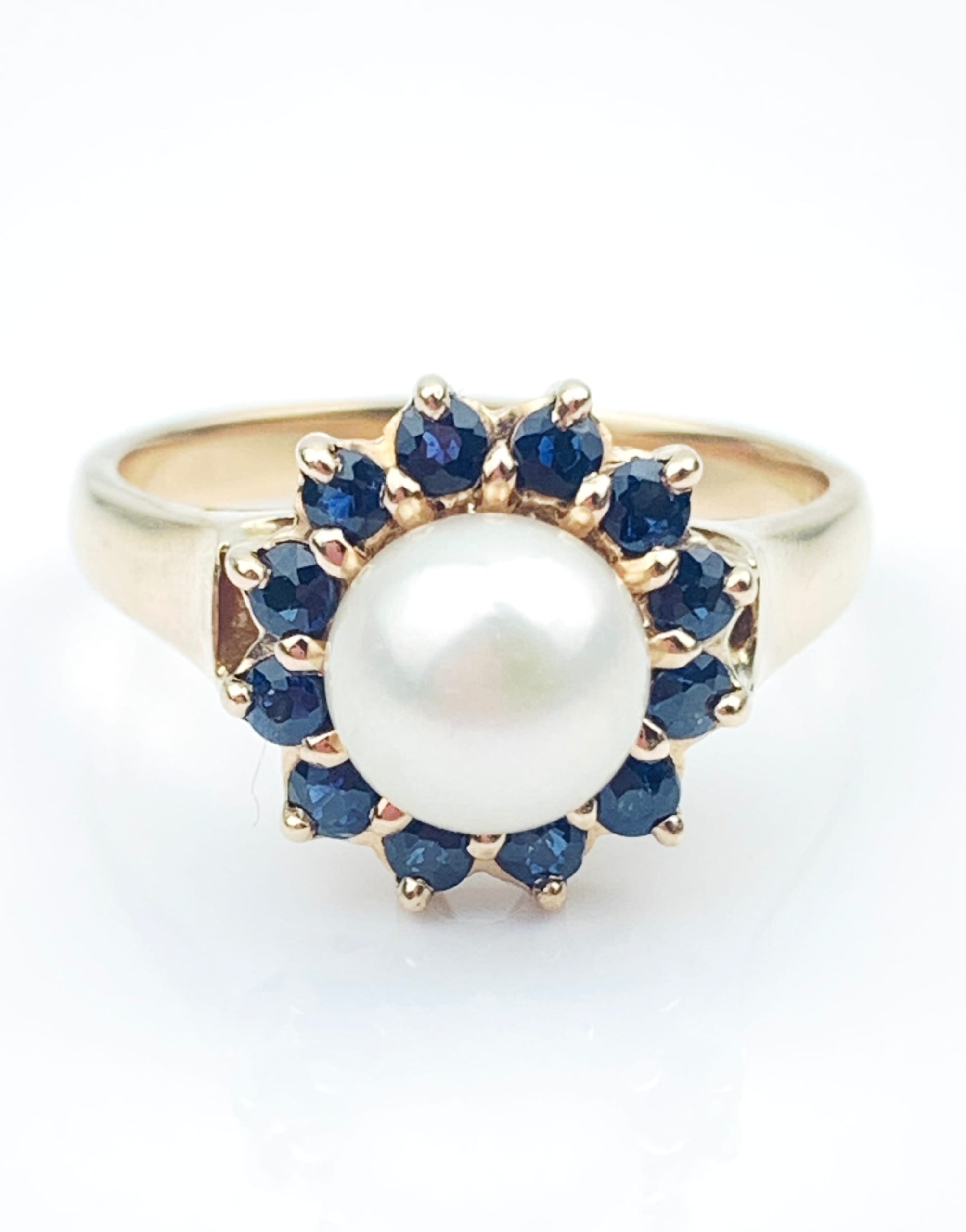 Lovely 9ct Yellow Gold Sapphire & Pearl Ring