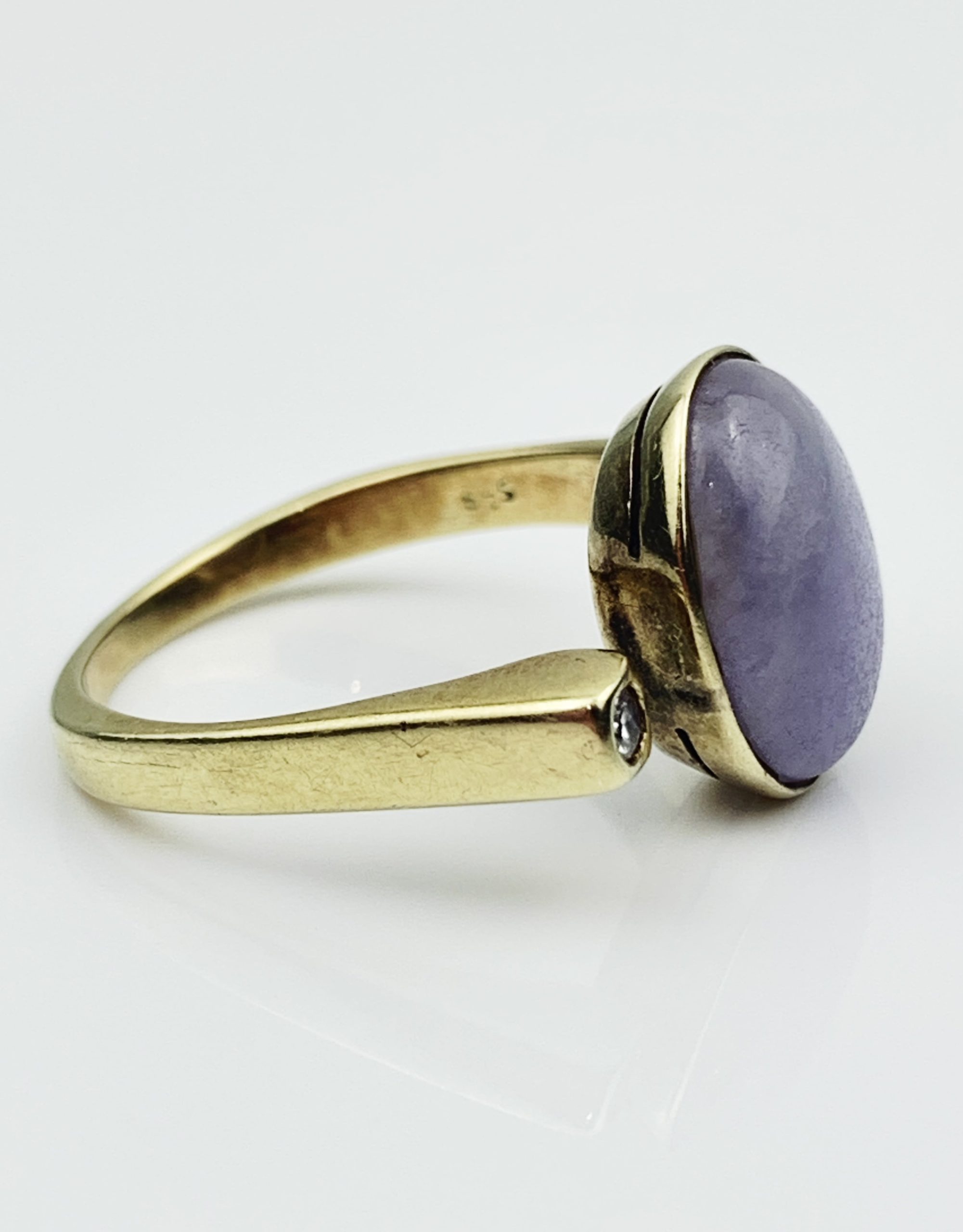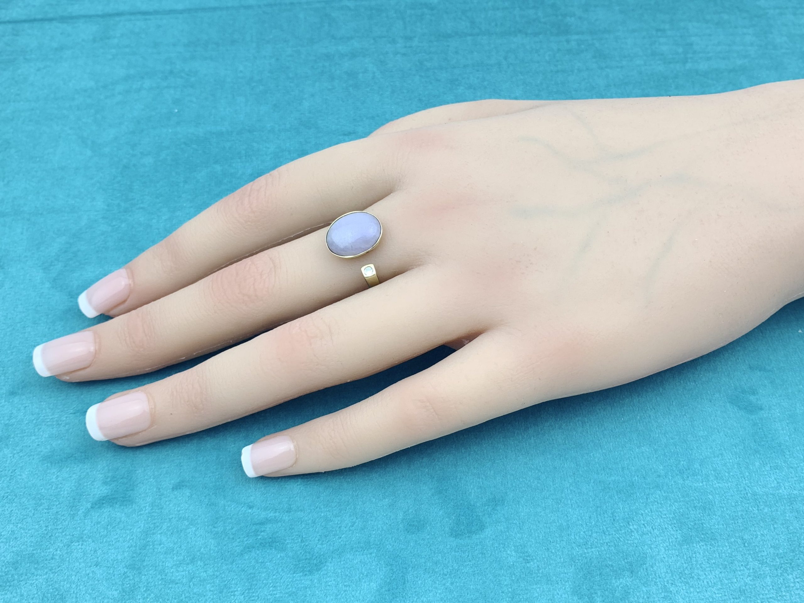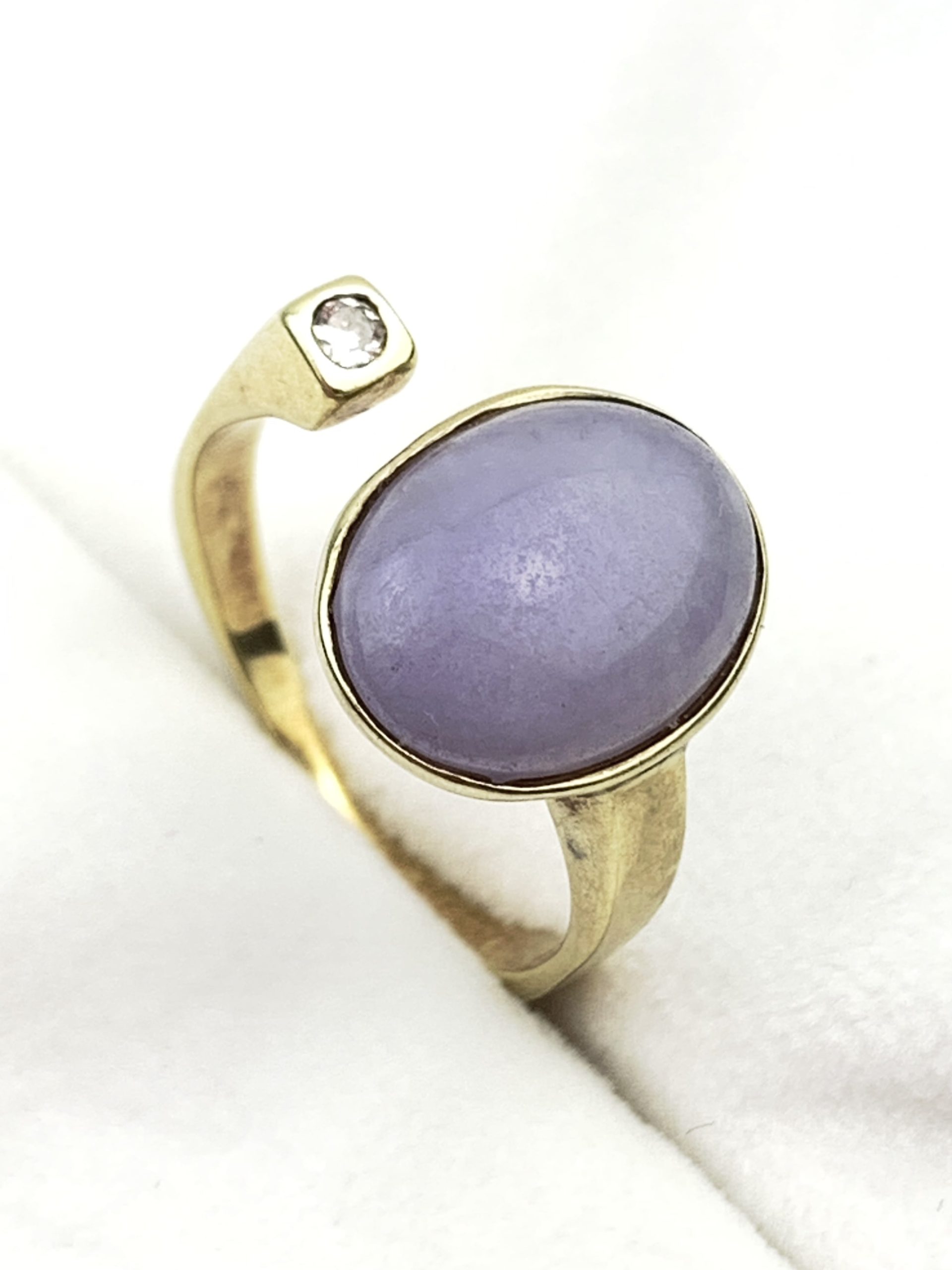 Open-cuff 14ct Gold Diamond & Lavender Jadeite Ring