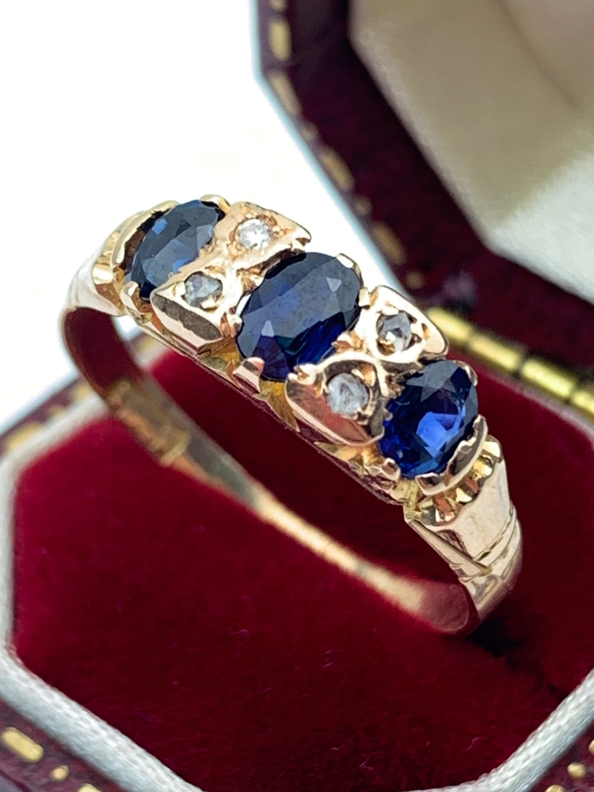 Vintage 15ct Gold Diamond & Sapphire Ring